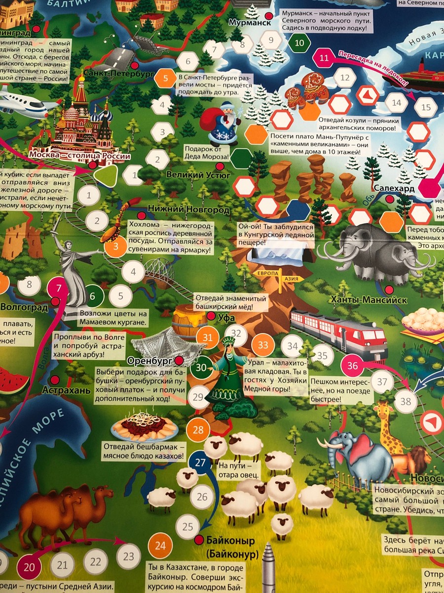 Игра-ходилка с фишками. Путешествие по России. ГЕОДОМ