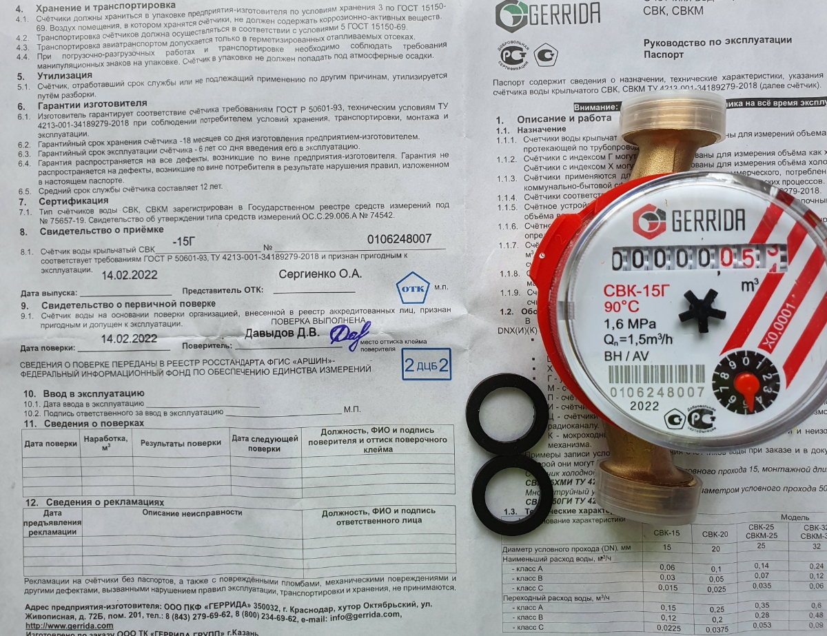 Счетчик универсальный для воды Gerrida СВК-15 с монтажным комплектом Уцененный товар (№13)