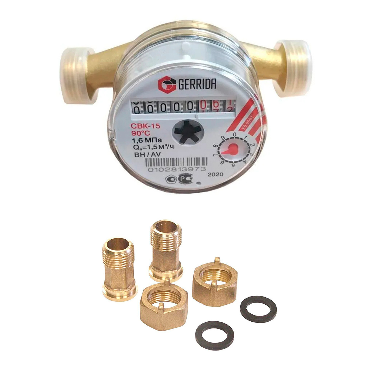 Счётчик воды универсальный ГЕРРИДА 1/2" СВК-15ГМ-80 мм с набором монтажных частей - 1 шт.