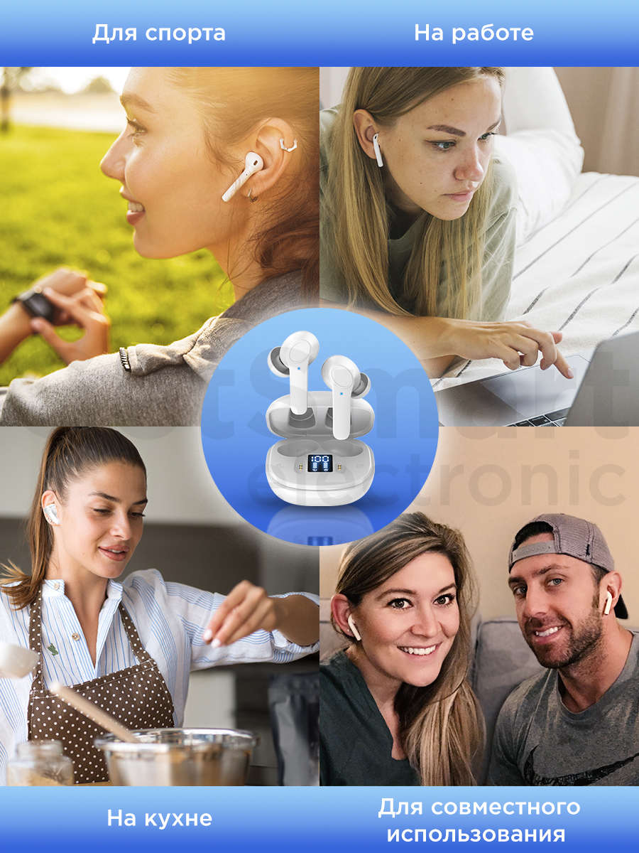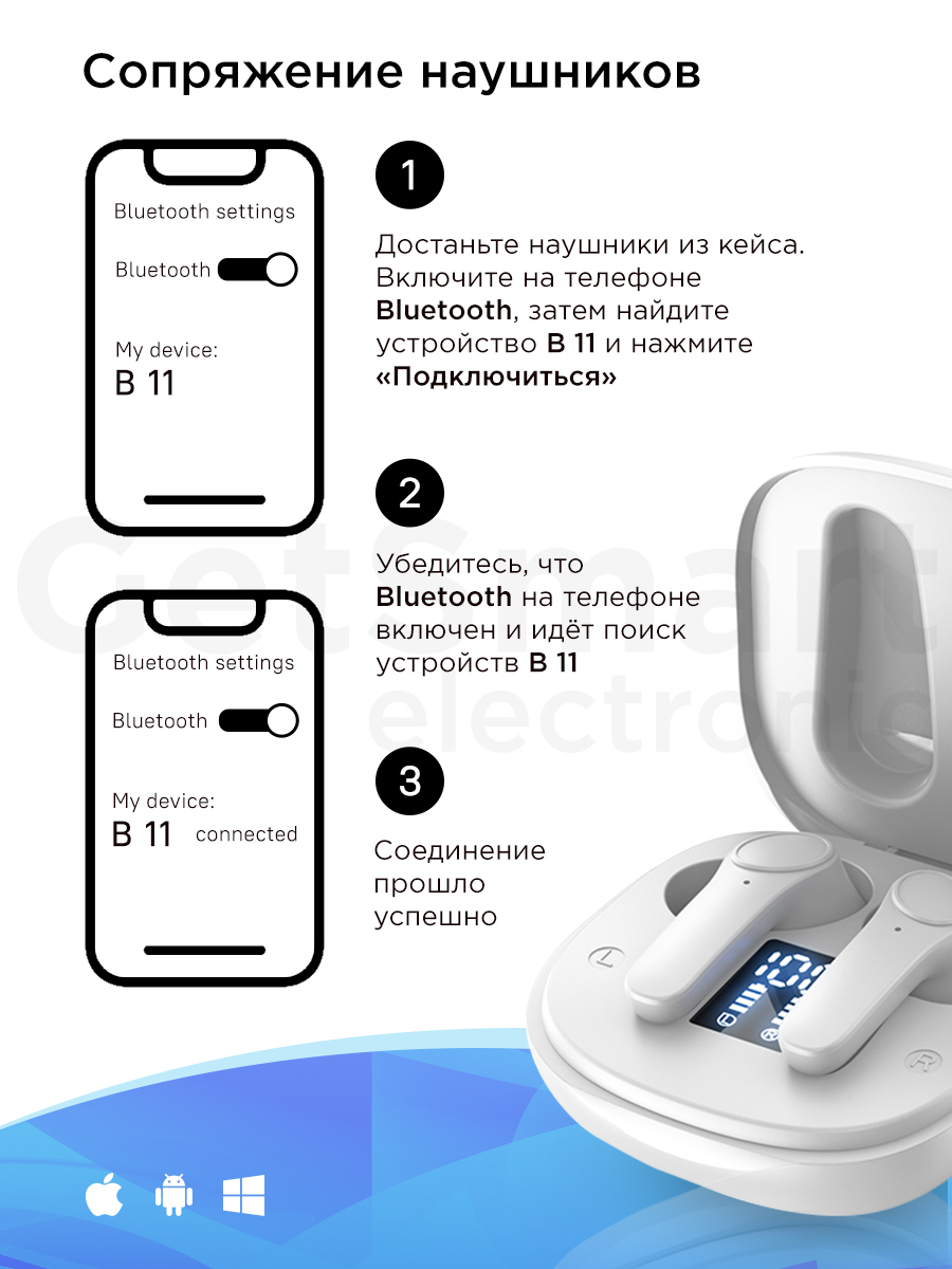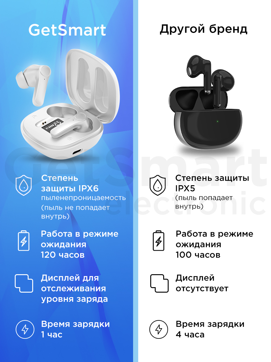 Наушники беспроводные GetSmart electronics TWS, Bluetooth 5.0 + EDR, для IPhone, Android и Windows