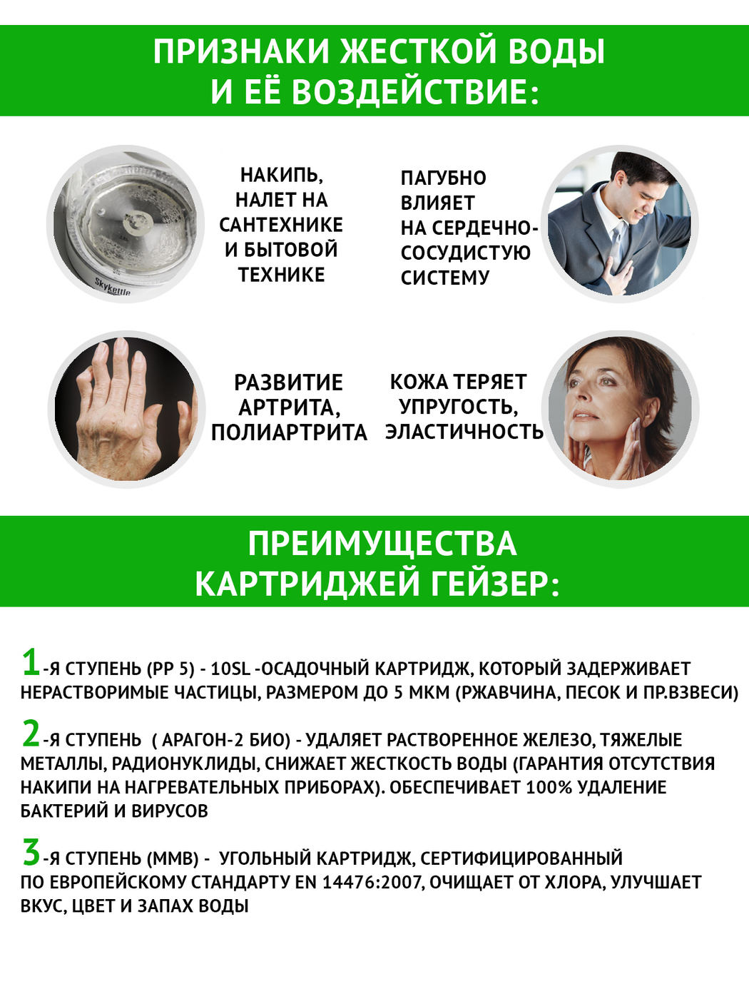 Комплект картриджей Гейзер №16, для сверхжесткой воды, для фильтров Гейзер Ультра Био 431