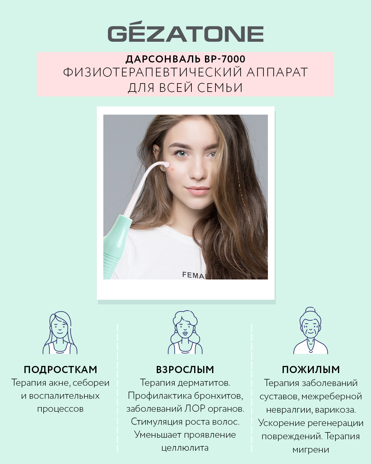 Gezatone Дарсонваль BP-7000 для лица тела и волос с 5 насадками