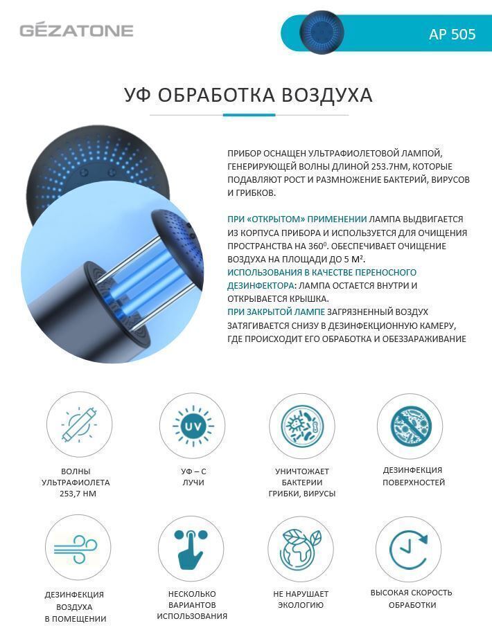 Очиститель воздуха Gezatone ультрафиолетовый беспроводной AP505, черный