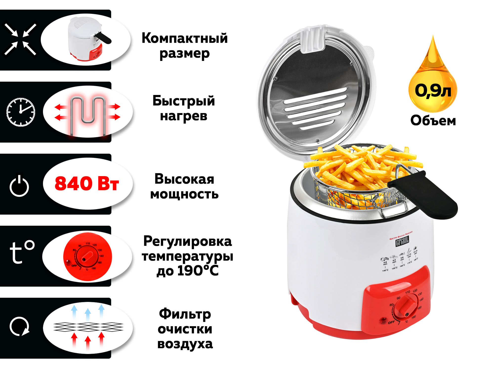 Фритюрница GFGRIL GFF-09, 0,9 л масла, компактный размер, регулировка температуры