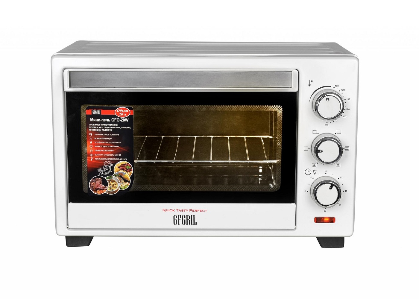Мини-печь GFgril Многофункциональная GFO-20W, 20л, конвекция, антипригарное покрытие, белый