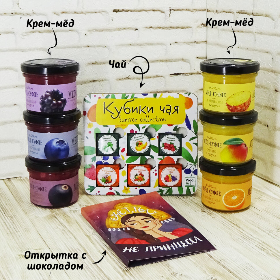 Подарочный набор из 6 видов крем-мёда, чая и шоколада "Королевна"