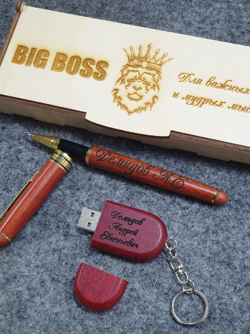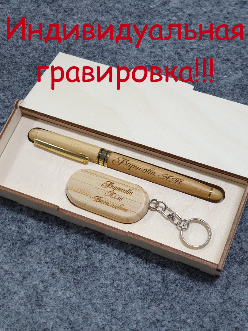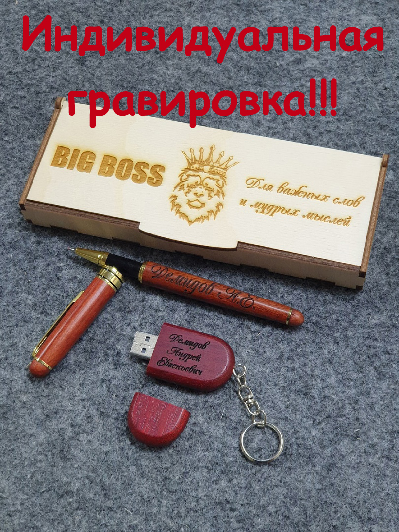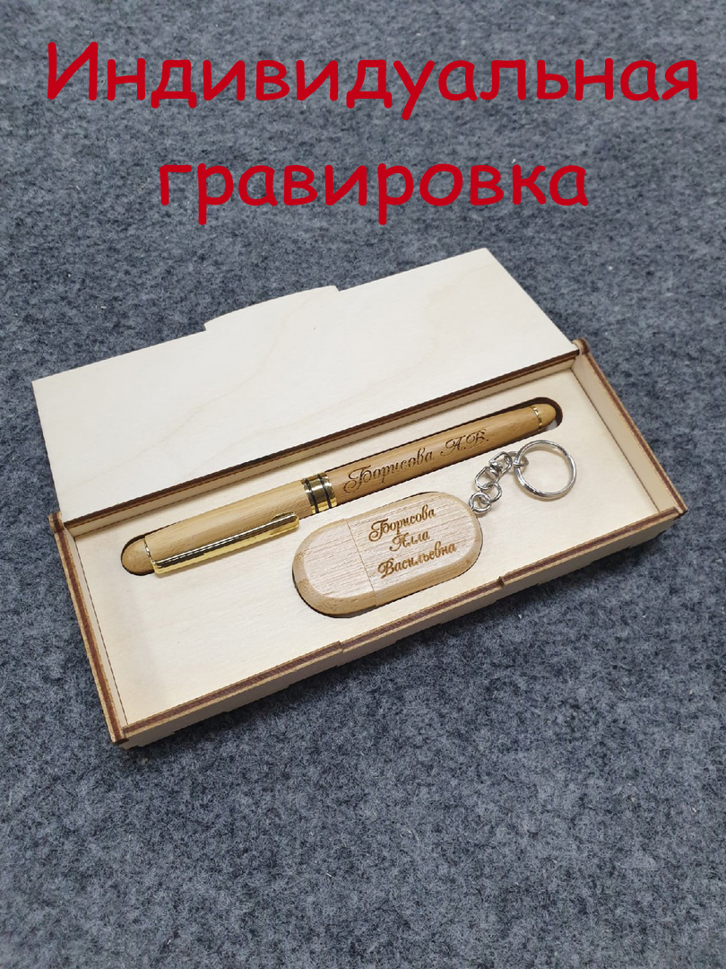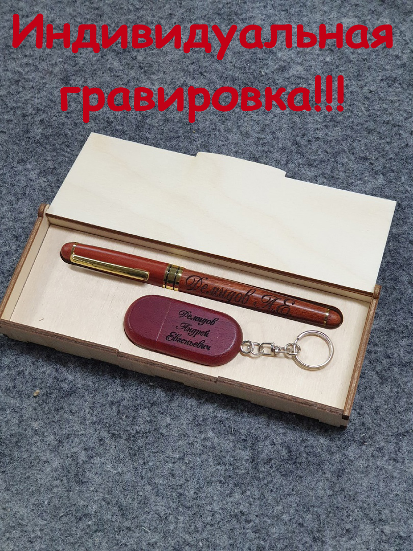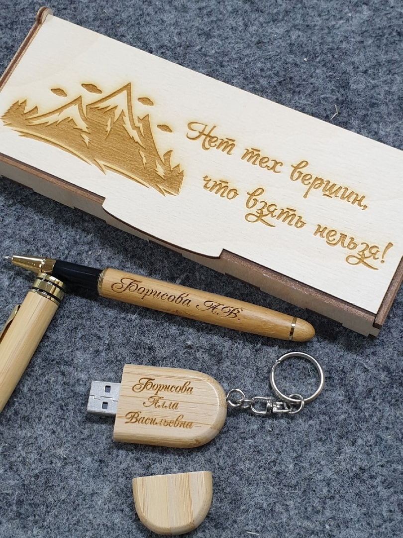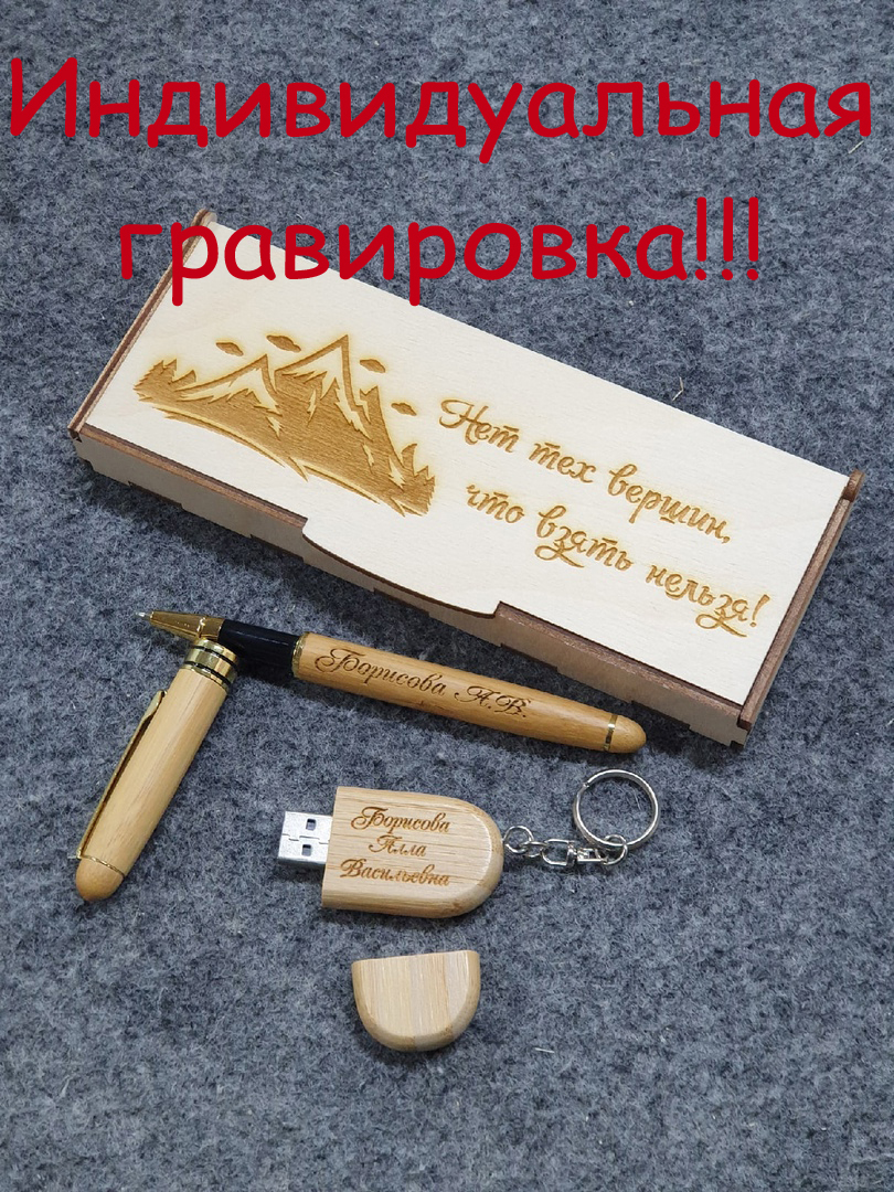 Подарочный набор с индивидуальной гравировкой, деревянная ручка, деревянная флешка