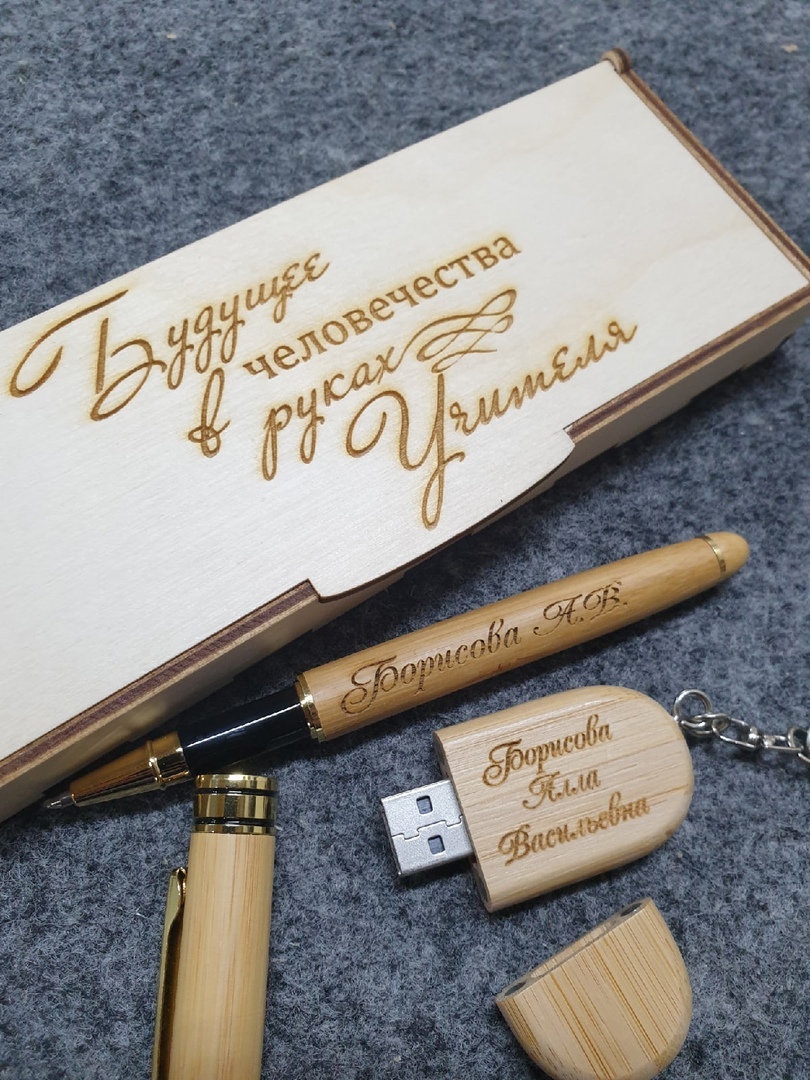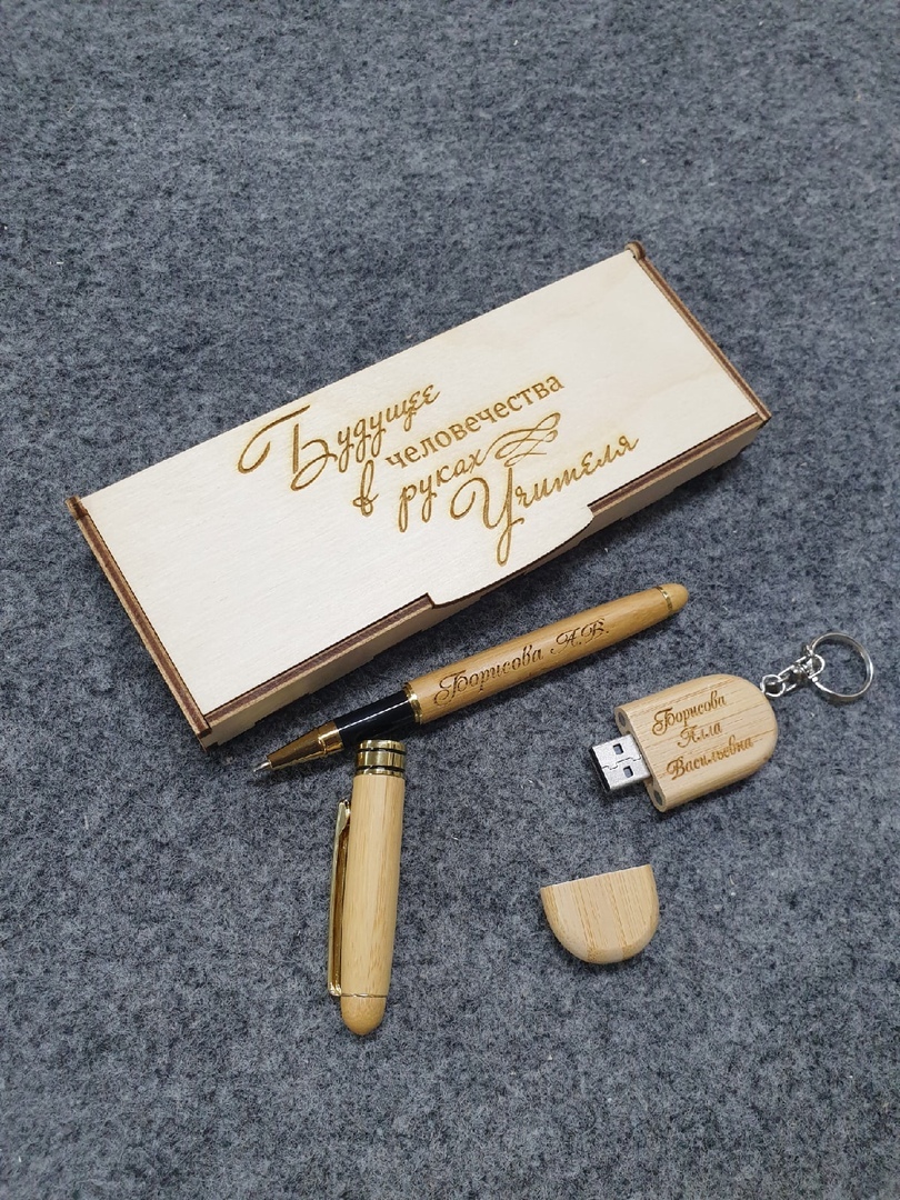 Подарочный набор для учителя, деревянная ручка, деревянная флешка с индивидуальной гравировкой