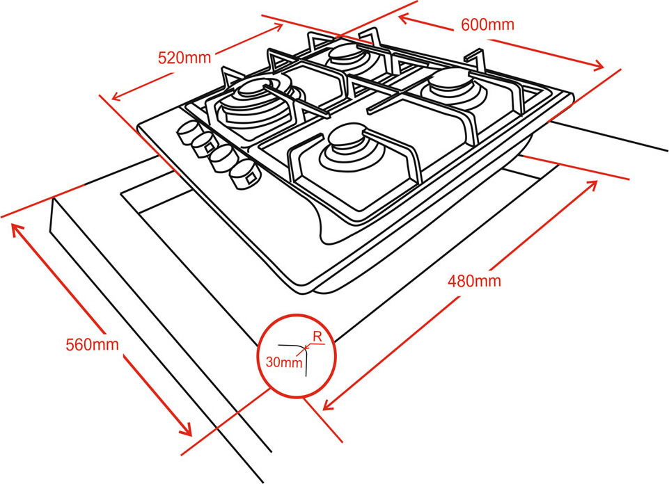 Варочная панель газовая HCG-444 Ginzzu стекло 4 конф, бежевая, эл.поджиг и газконтроль