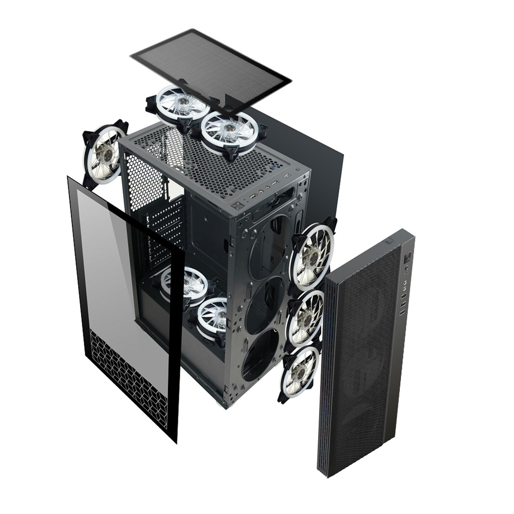 Корпус Ginzzu CL300, FAN 12CM RGB*4 USB3.0 NEW