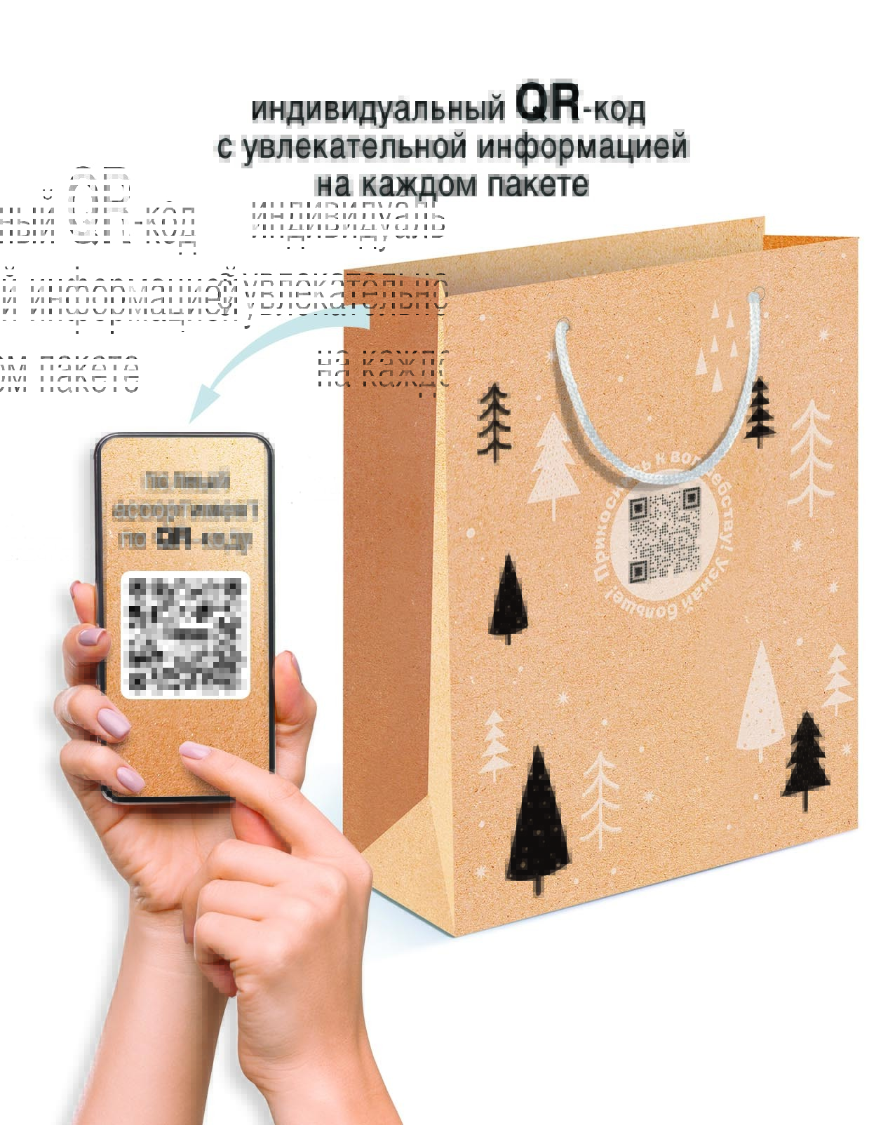 Пакет подарочный новогодний "Снеговики", крафт, 18х22х10 см