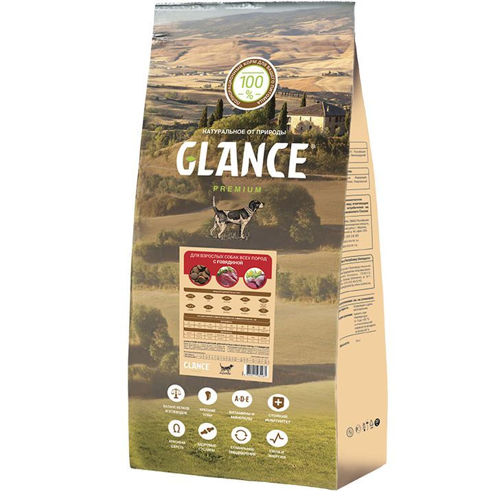 Корм сухой Glance для взрослых собак всех пород с говядиной 20 кг
