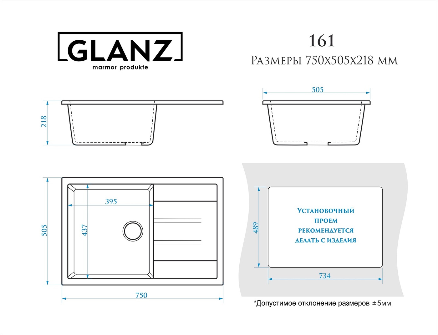 Кухонная мойка GLANZ врезная J-161-32 цвет: антрацит