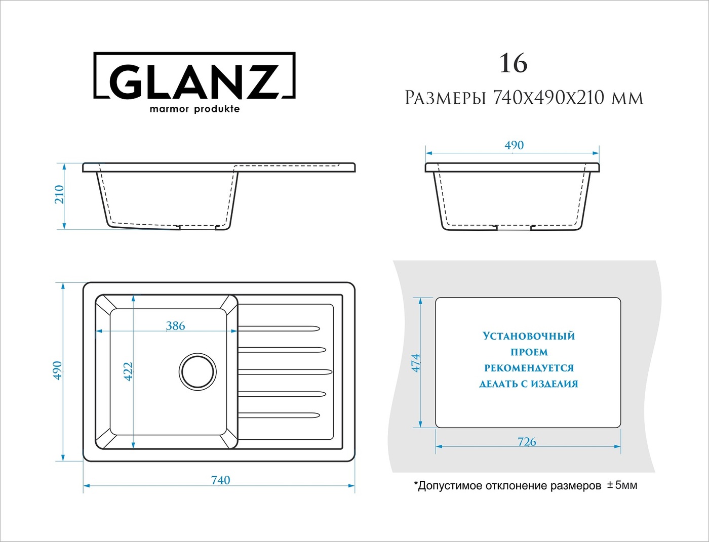 Кухонная мойка GLANZ врезная J-016-35 цвет: темно-серый