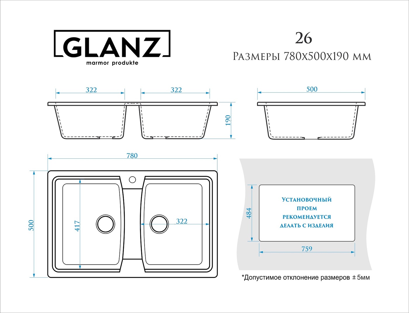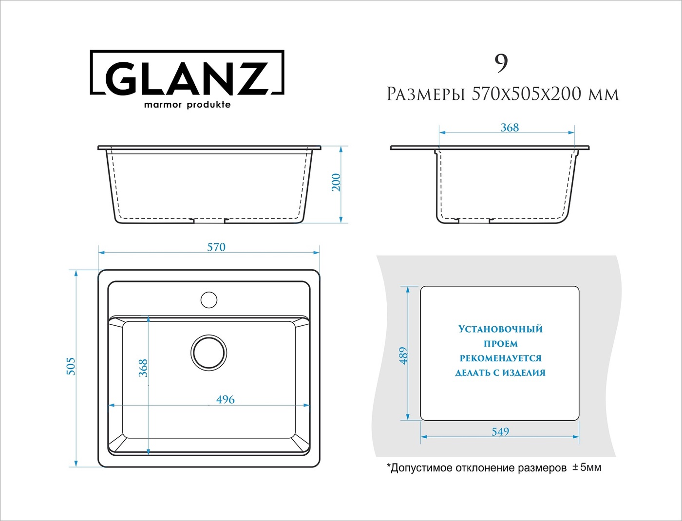 Кухонная мойка GLANZ врезная J-190-32 цвет: антрацит