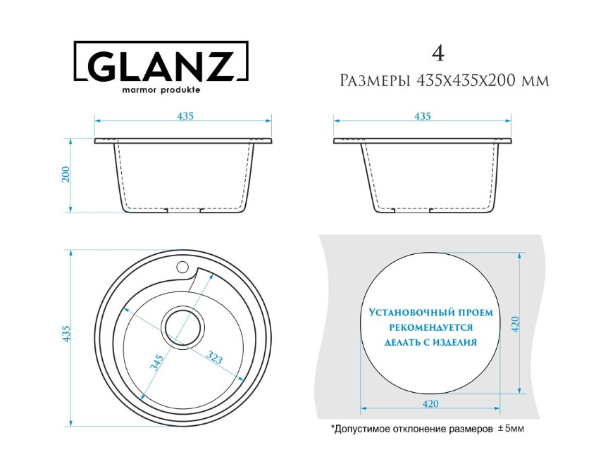 Кухонная мойка GLANZ врезная J-009-35 цвет: темно-серый