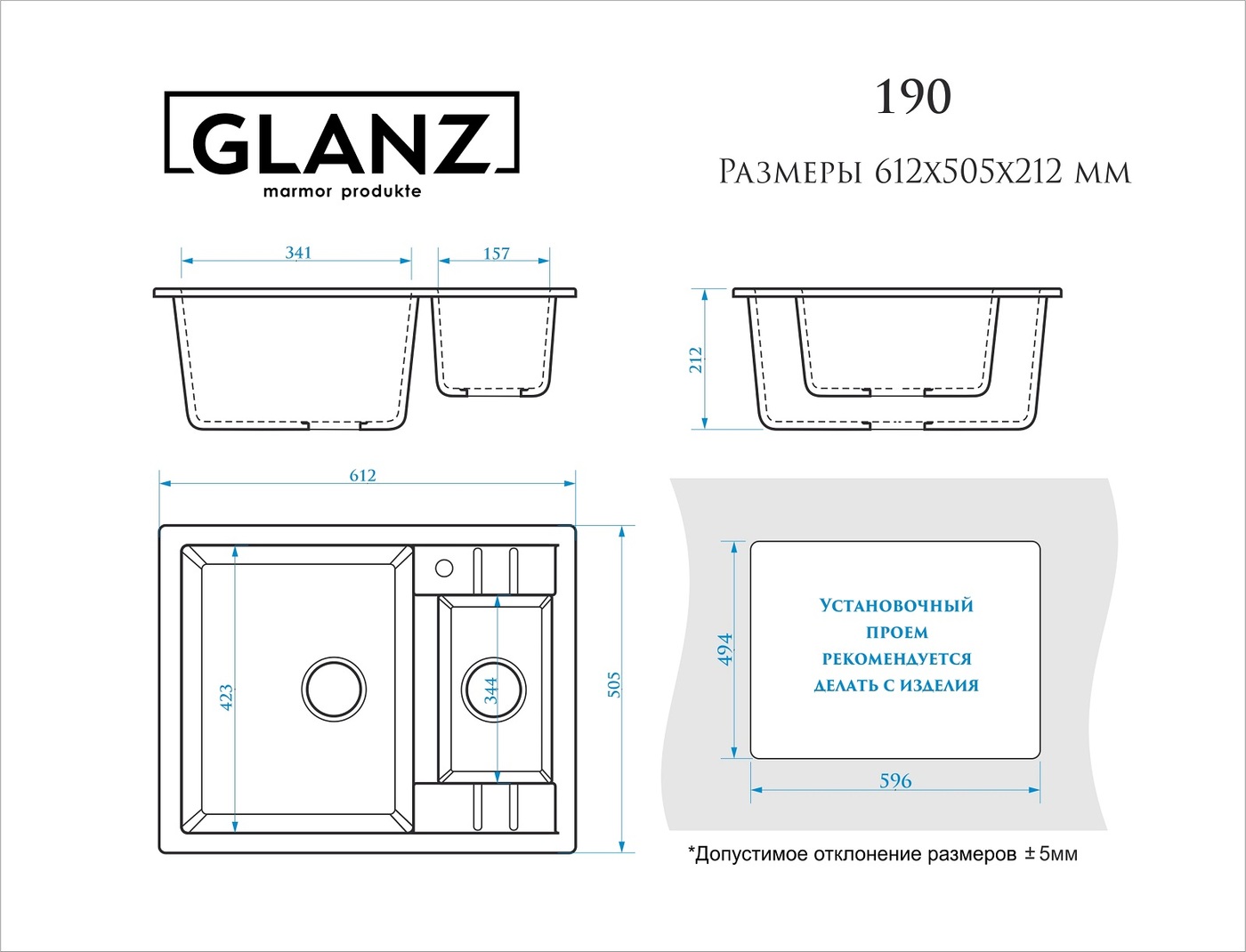 Кухонная мойка GLANZ врезная J-191-33 цвет: бежевый