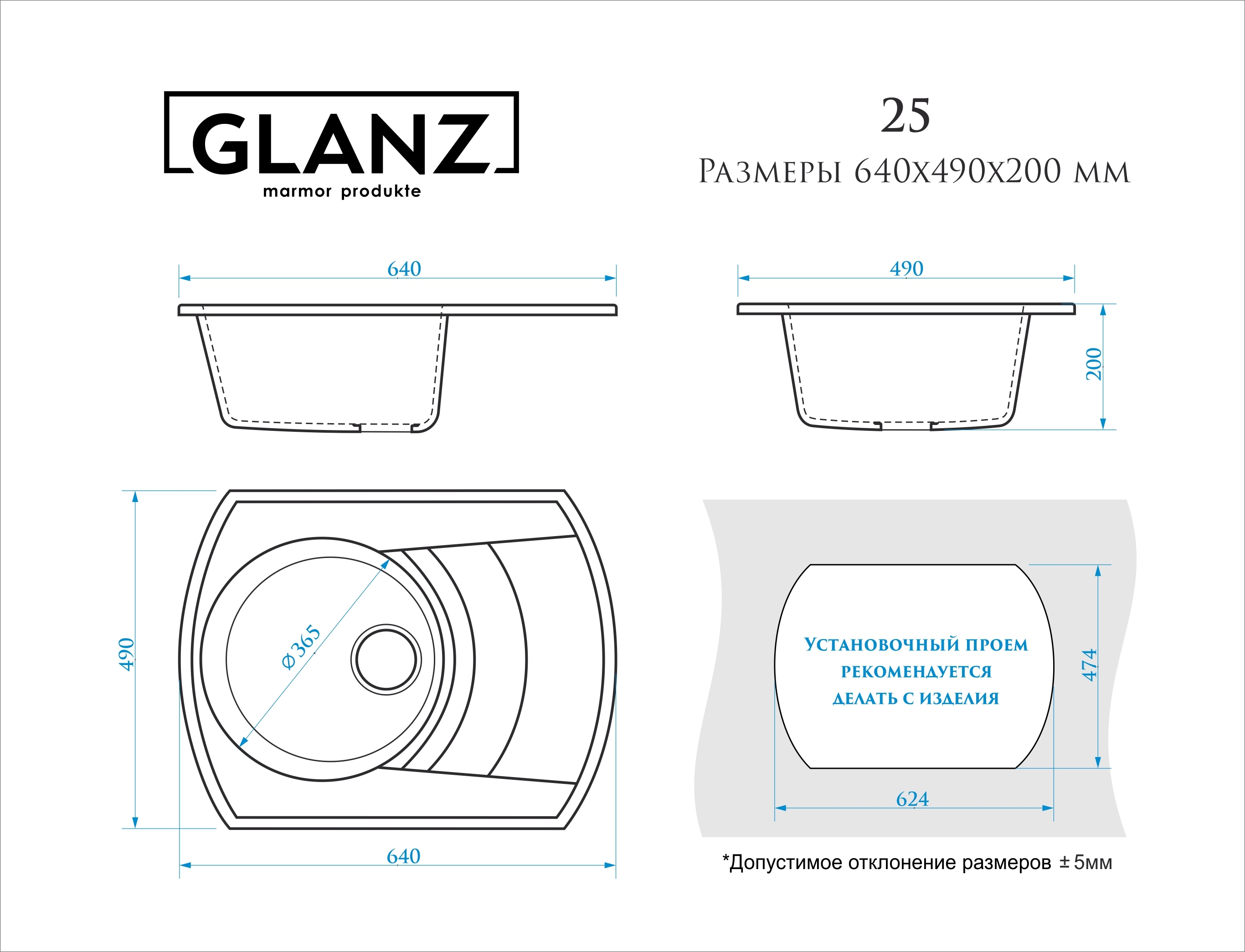 Кухонная мойка GLANZ врезная J-025-32 цвет: антрацит