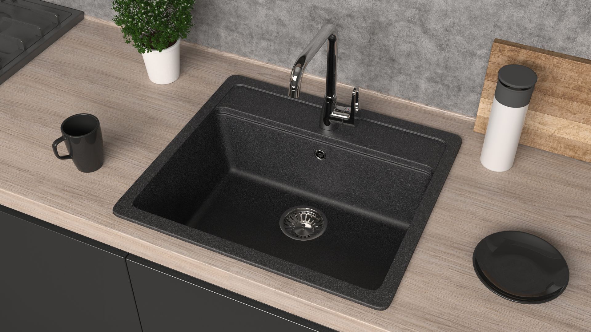 Кухонная мойка GLANZ врезная J-190-32 цвет: антрацит