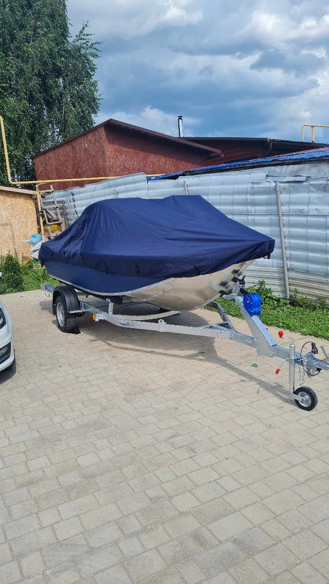 ТЕНТ НА КАТЕР КАТЕР РУСБОТ-47 с РЕЙЛИНГАМИ СЕРЫЙ