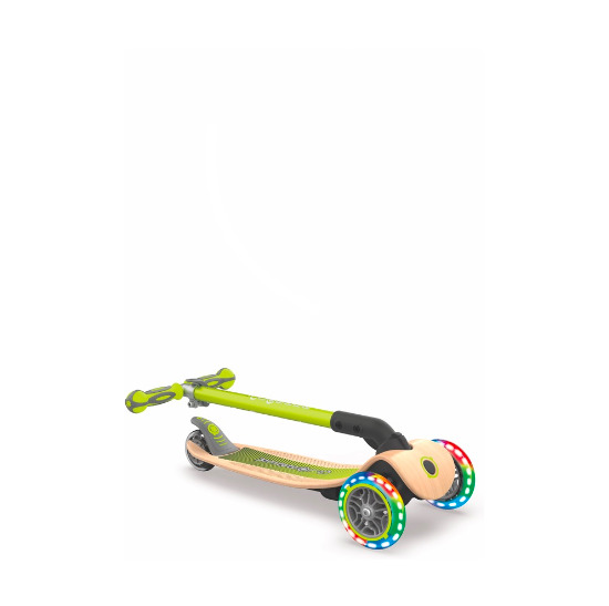 Самокат детский трехколесный складной "GLOBBER" PRIMO FOLDABLE WOOD LIGHTS зеленый