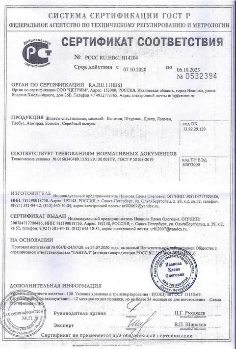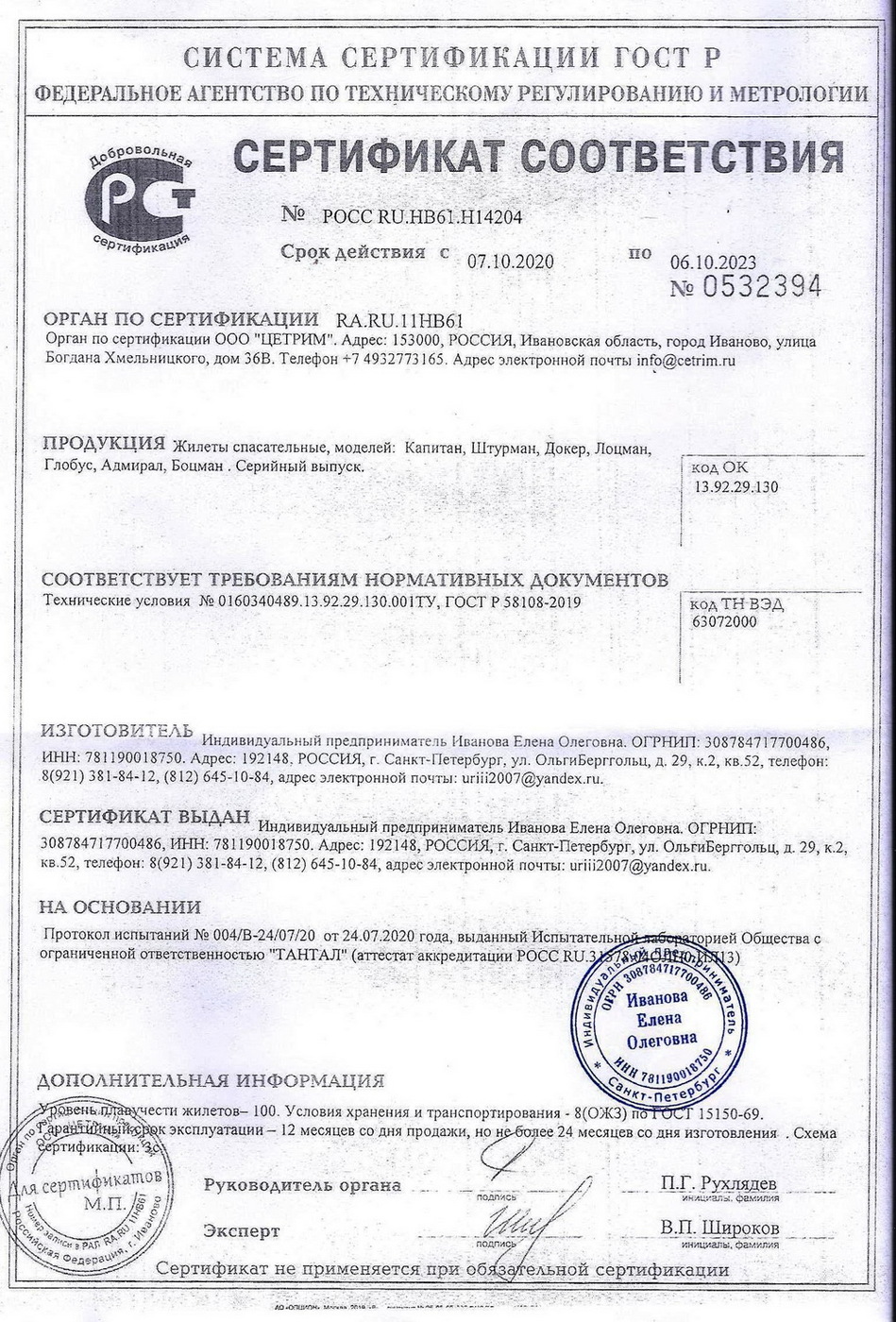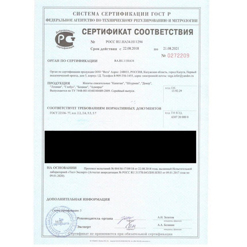 Спасательный жилет "Штурман" до 100 кг., сертификат Новый ГОСТ, ГИМС