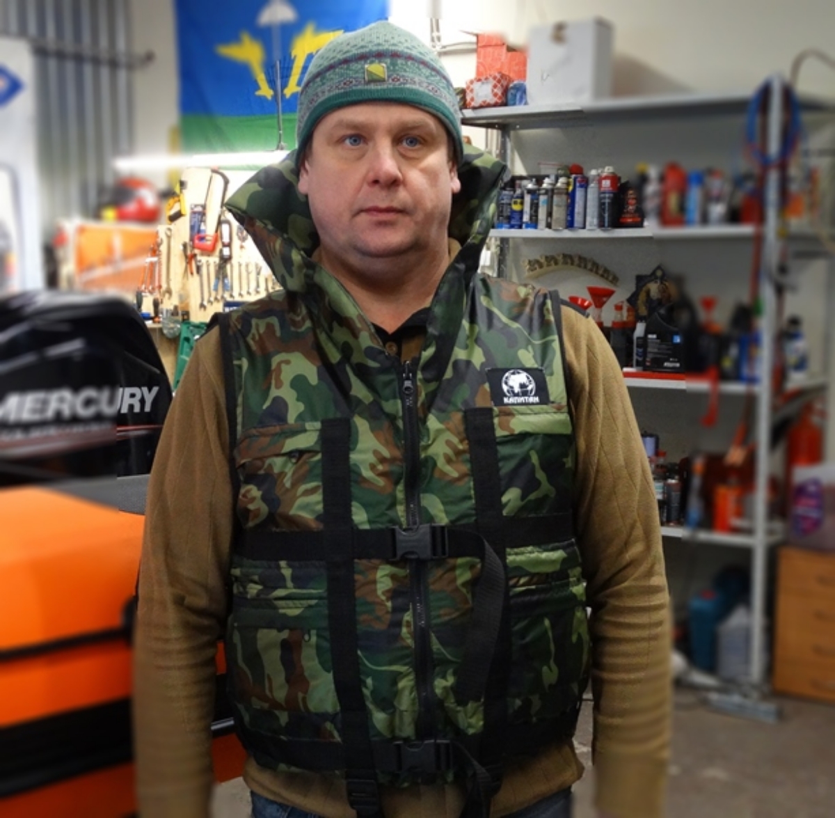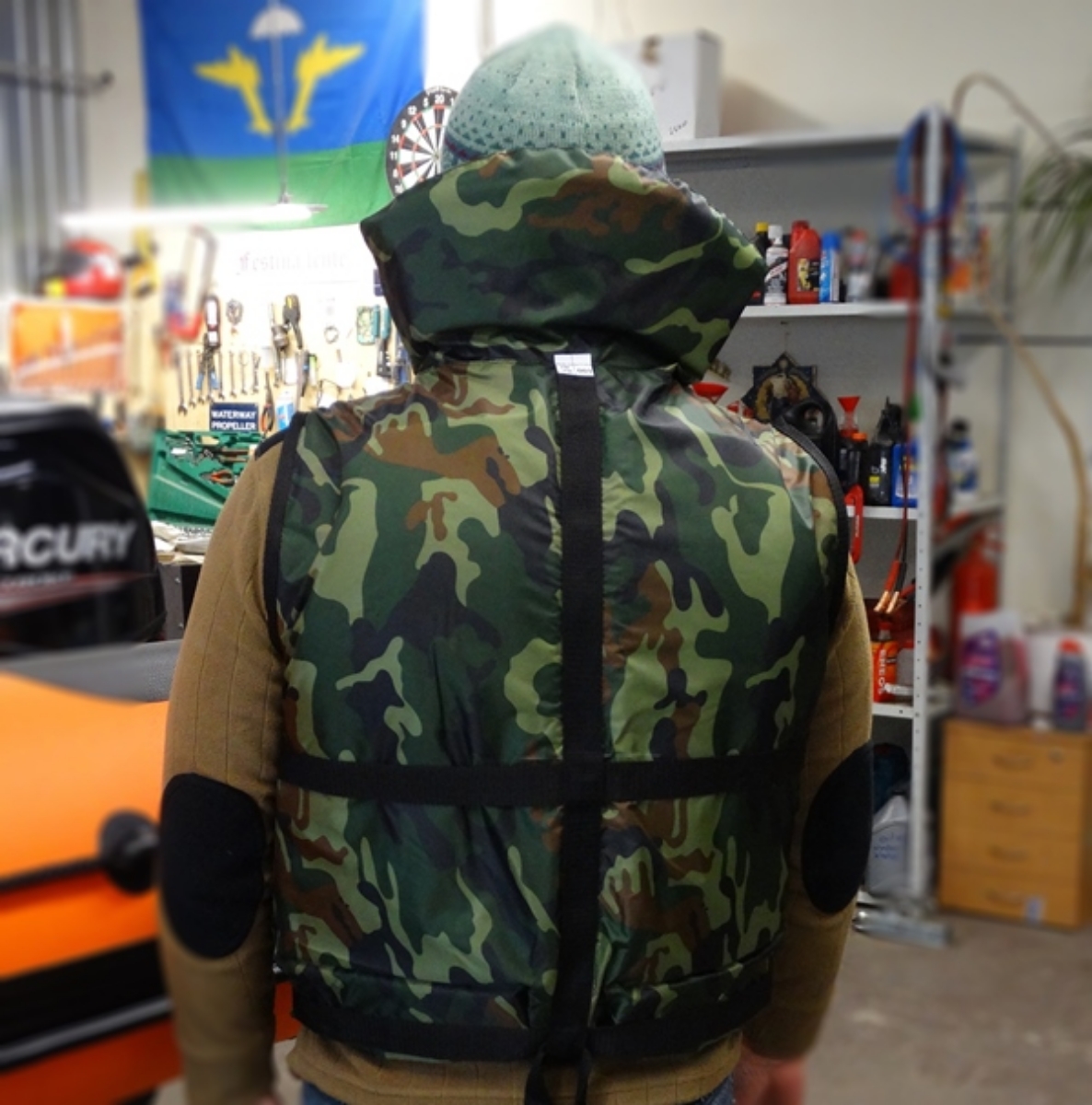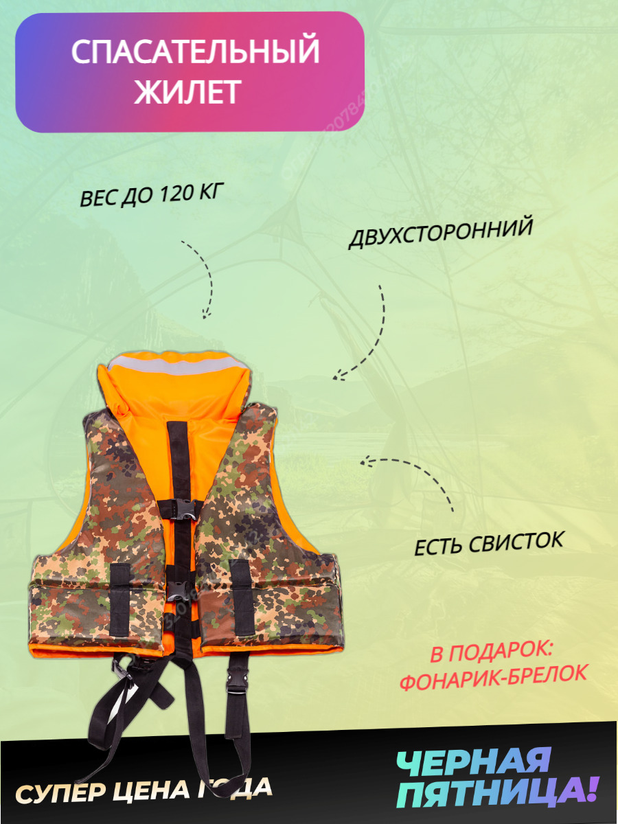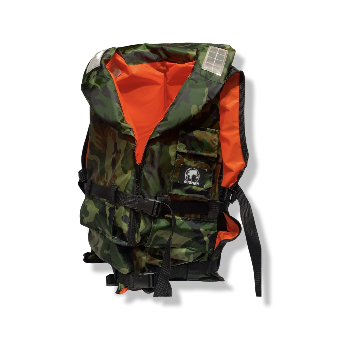 Жилет спасательный камуфляж на молнии Лоцман Гимс. Универсальный спасжилет Глобус до 120 кг