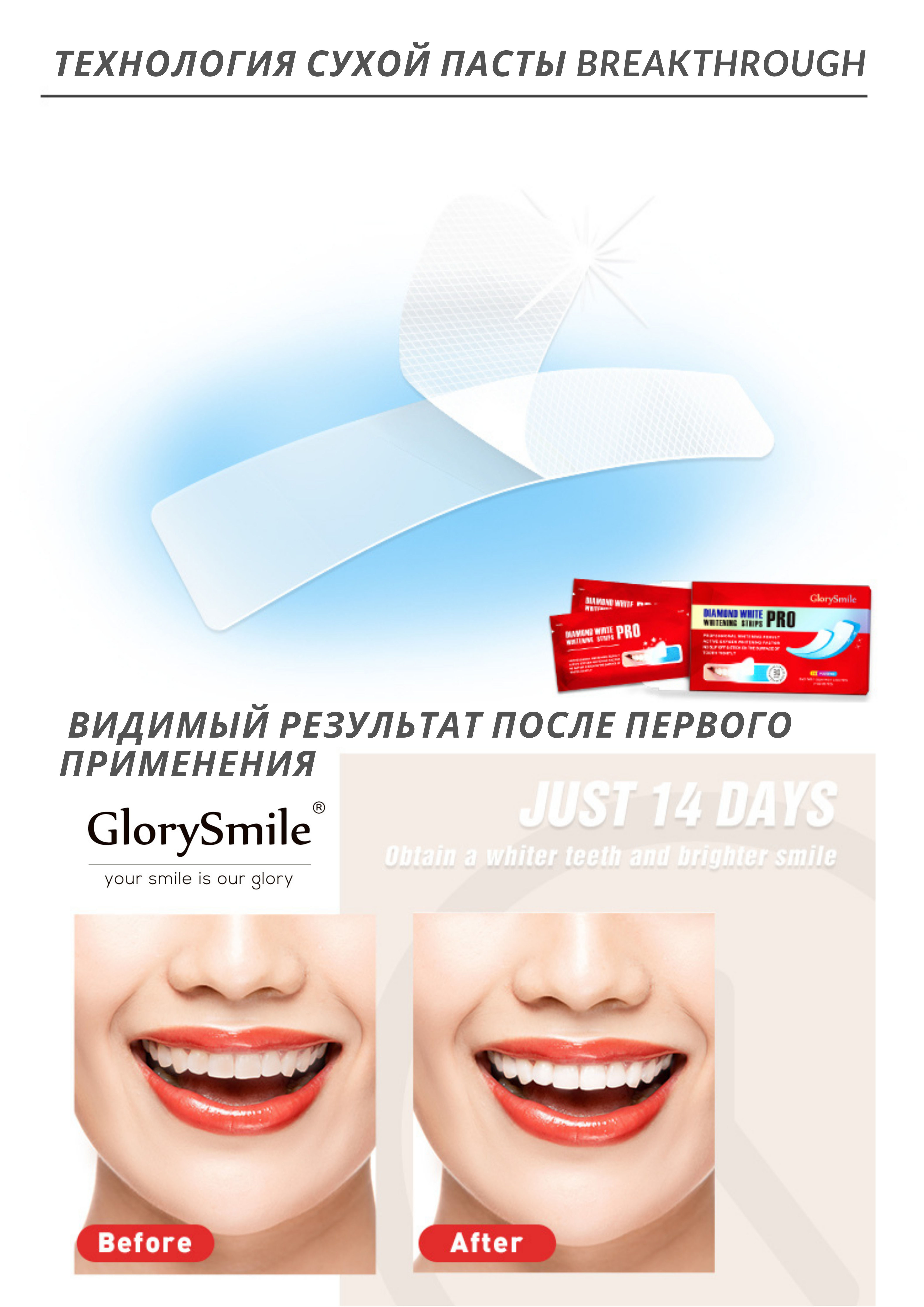 Отбеливающие полоски для зубов GlorySmile профессиональные с пероксидом водорода 6% 28 шт