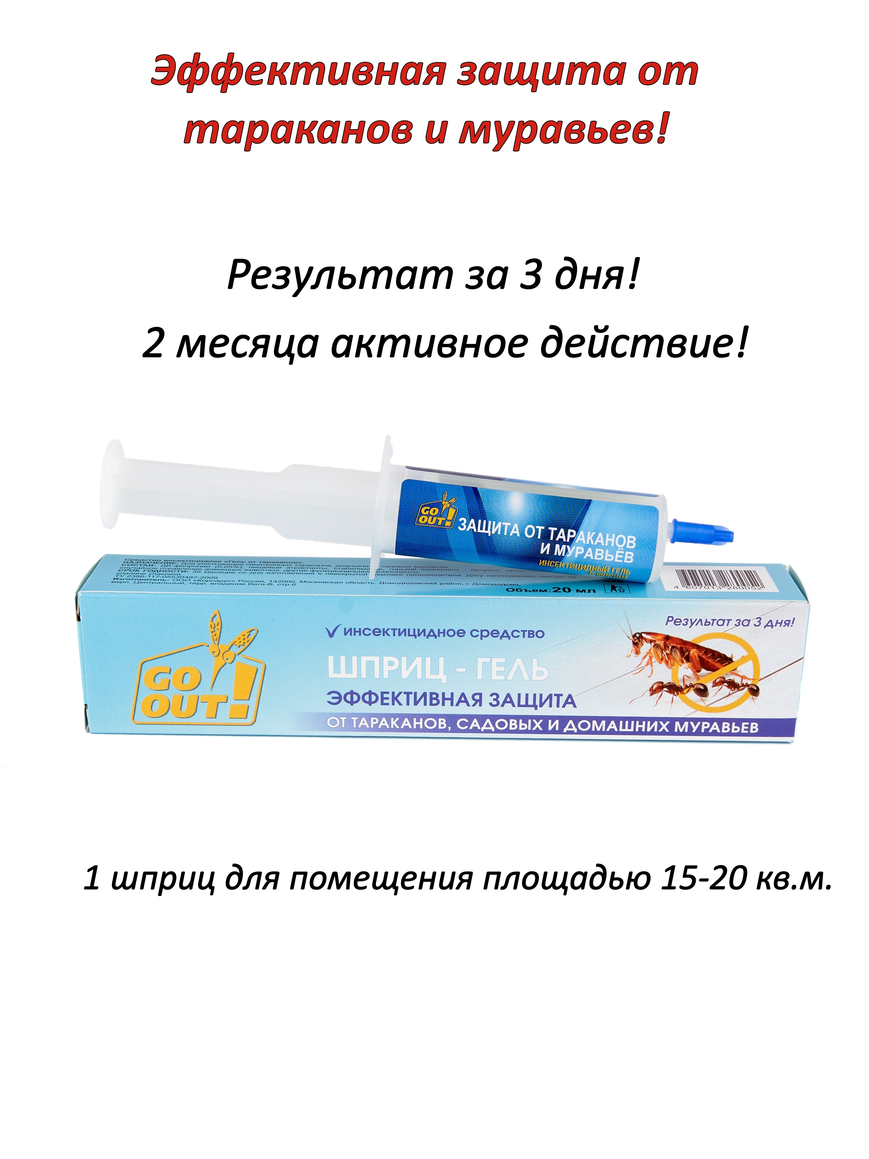 Шприц-гель GO OUT эффективная защита от тараканов, садовых и домашних муравьев, 20 мл.