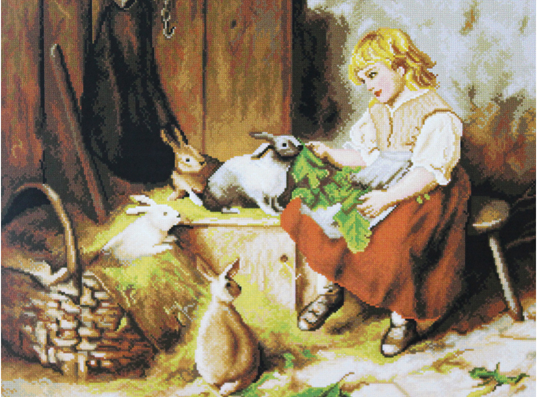 Набор для вышивания гобеленовым швом Expressions "Кормление кроликов", 35 х 46,5 см