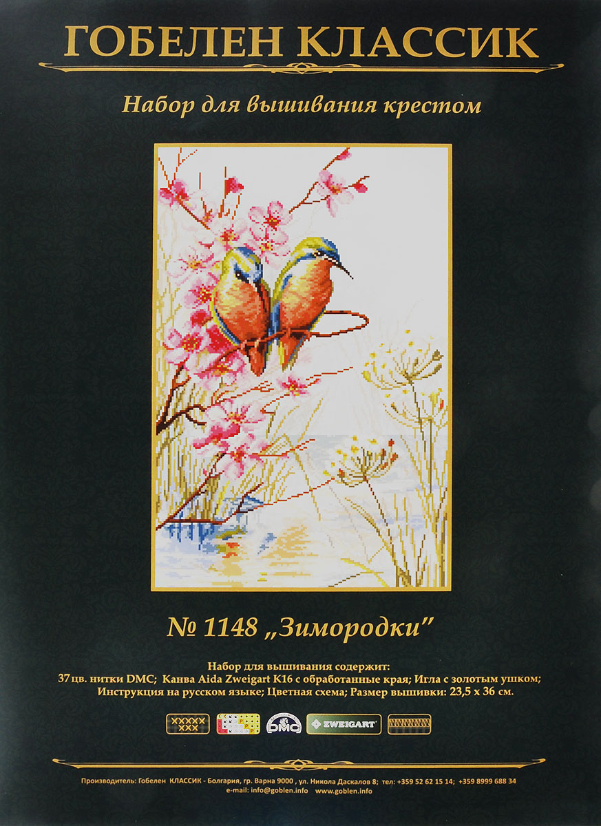 Набор для вышивания крестом Гобелен Классик "Синицы и цветы", 28 х 28 см