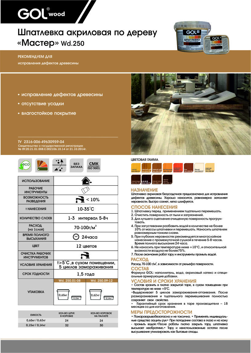 Wd.232.07, Пропитка защитно-декоративная GOL wood AQUA (0,9 кг), тик / tick
