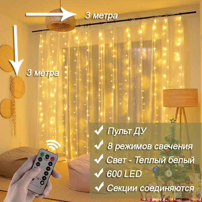 Электрогирлянда интерьерная Штора Golden Cups Светодиодная 208 ламп, 3 м, питание От сети 220В