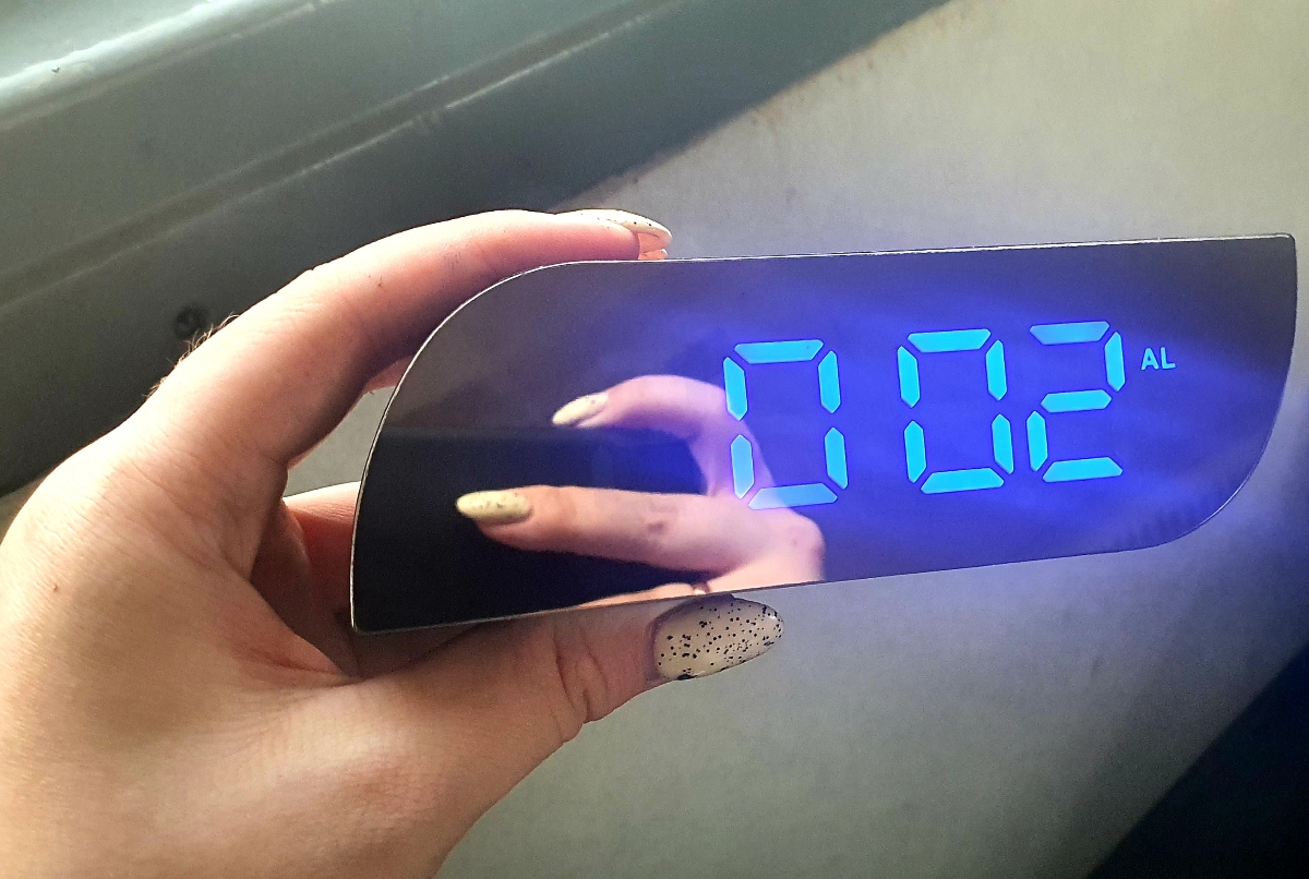Часы-будильник настольные электронные 018, зеркальные, дисплей - синий