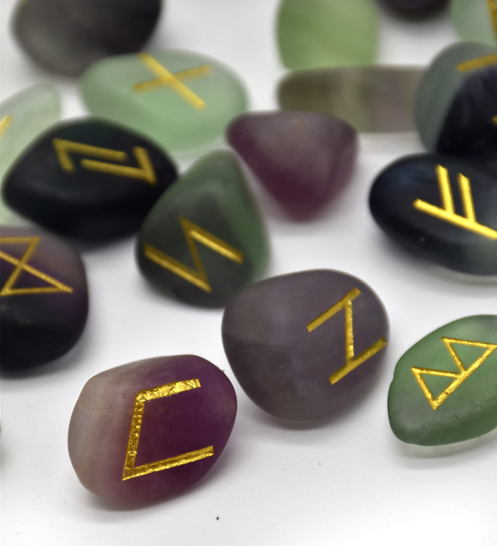 Набор скандинавских рун из амазонита 25 шт + салфетка и мешочек