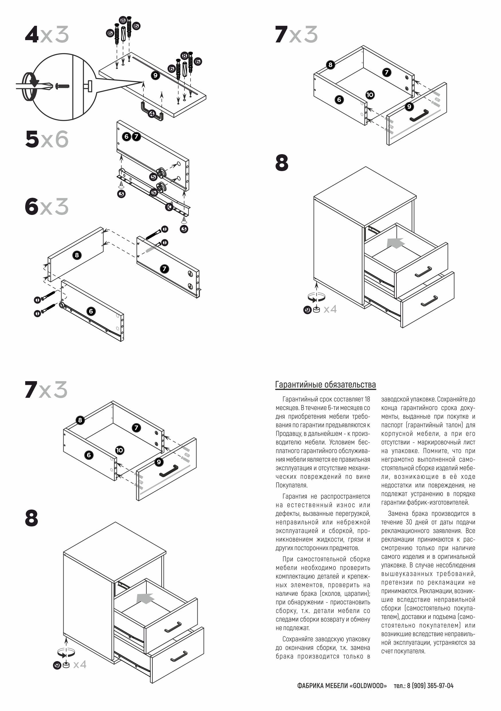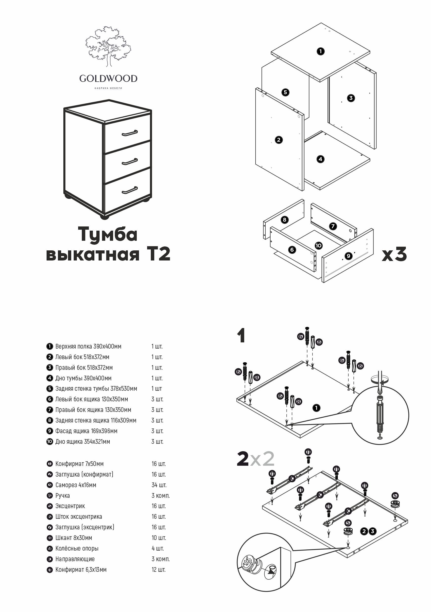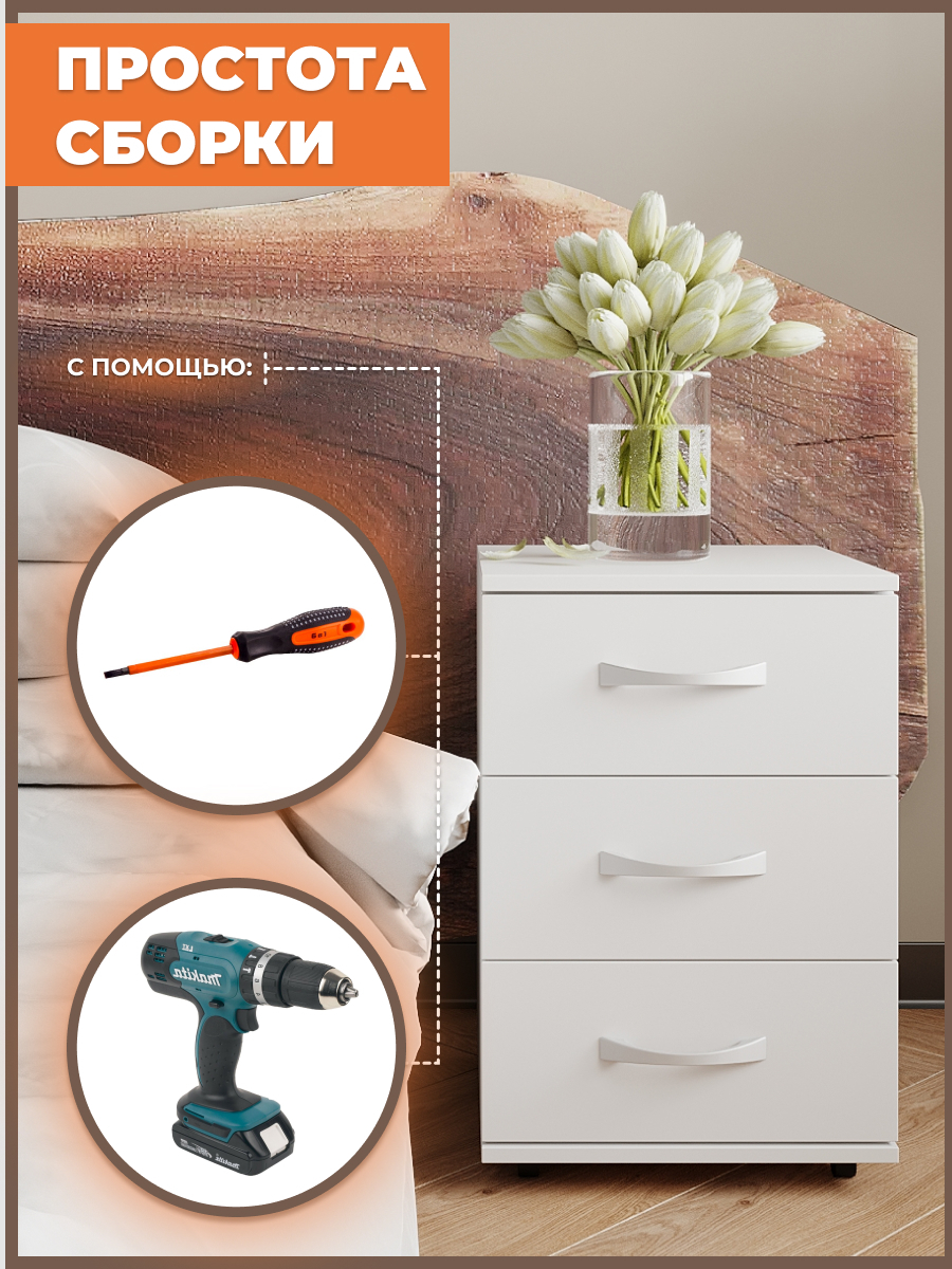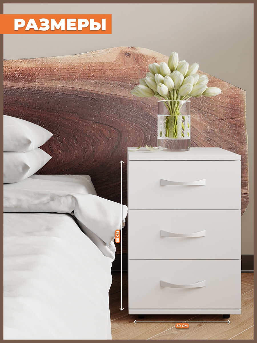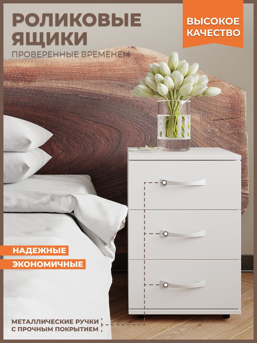Тумба прикроватная GOLDWOOD Роликовые ящики, 3 ящ., 40х39х60 см
