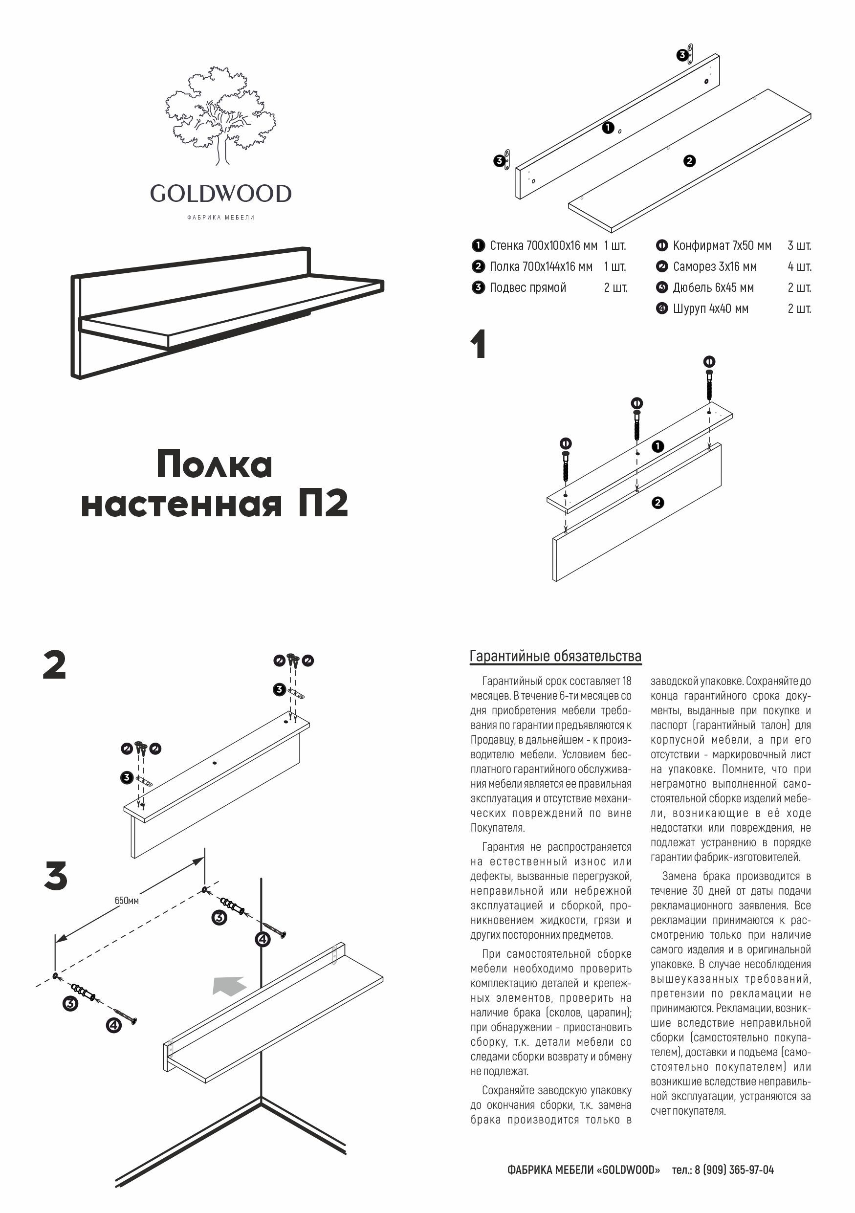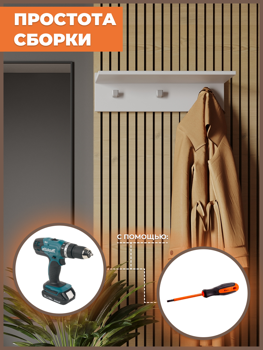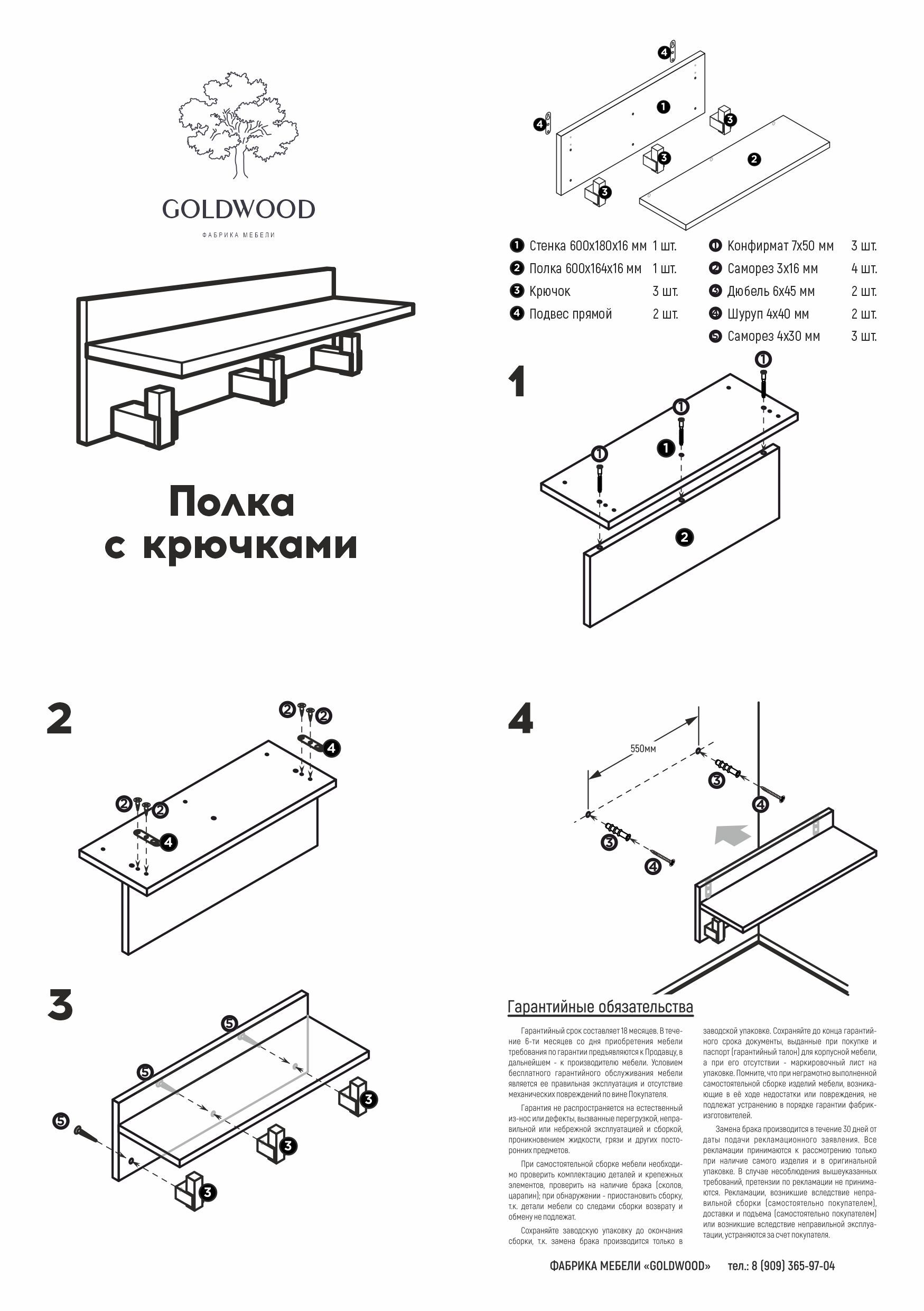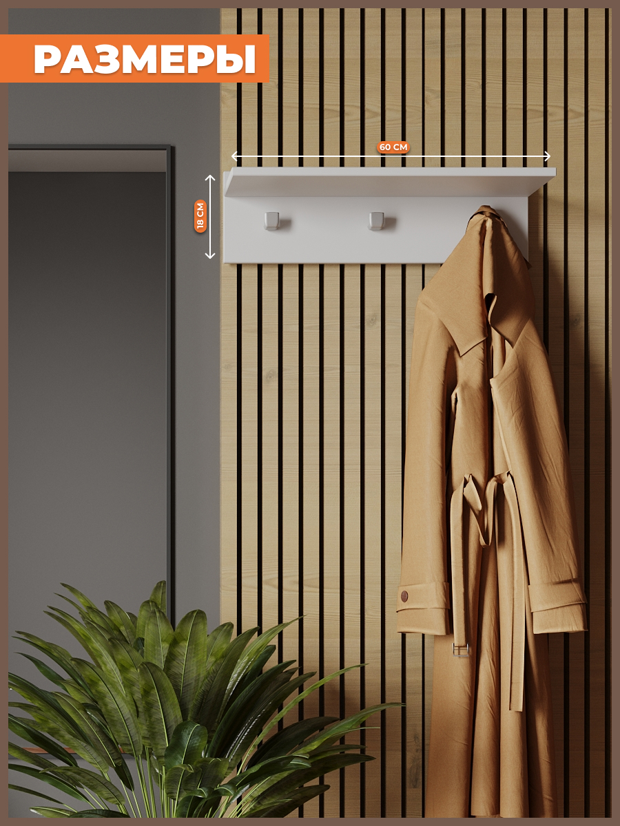 Полка GOLDWOOD Настенная Прямая настенная с крючками, 70х20х18 см, 1 шт.
