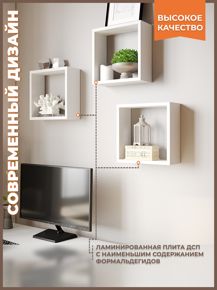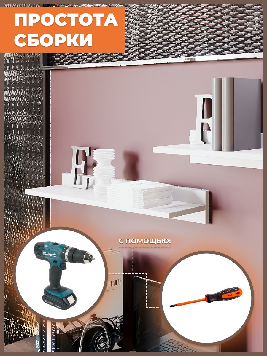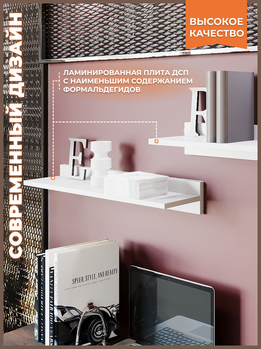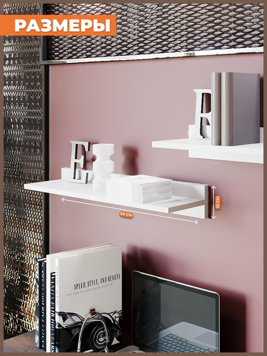 Полка GOLDWOOD Настенная Прямая Оригинальная в стиле минимализма, 104.2х20х56.5 см, 1 шт.