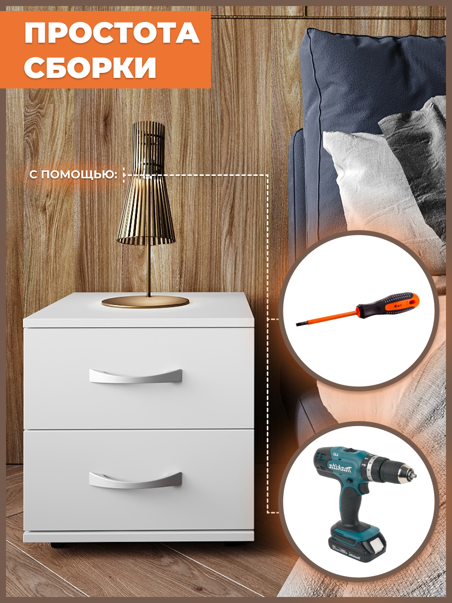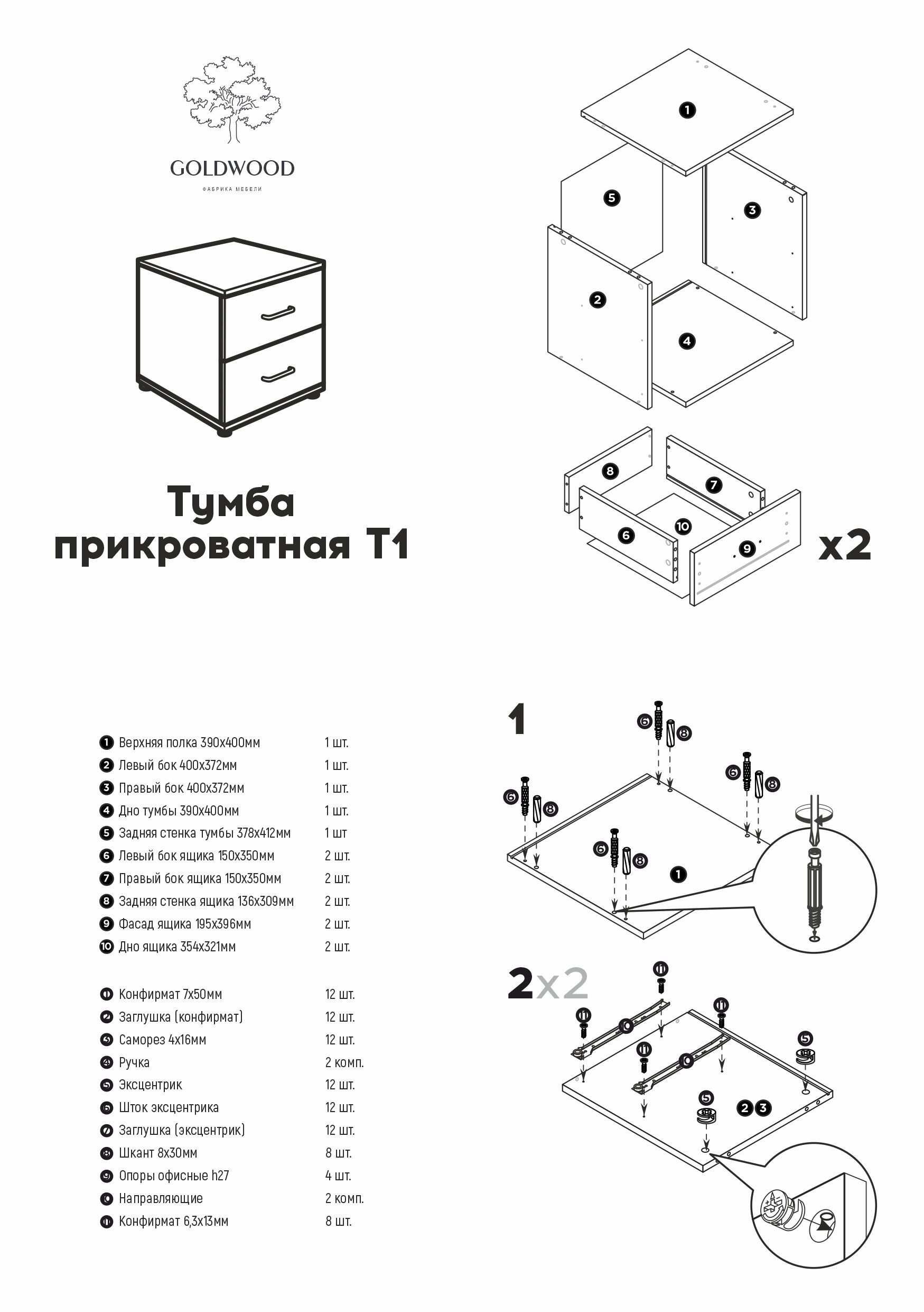 Тумба прикроватная GOLDWOOD 2 ящика, 2 ящ., 40х39х46 см