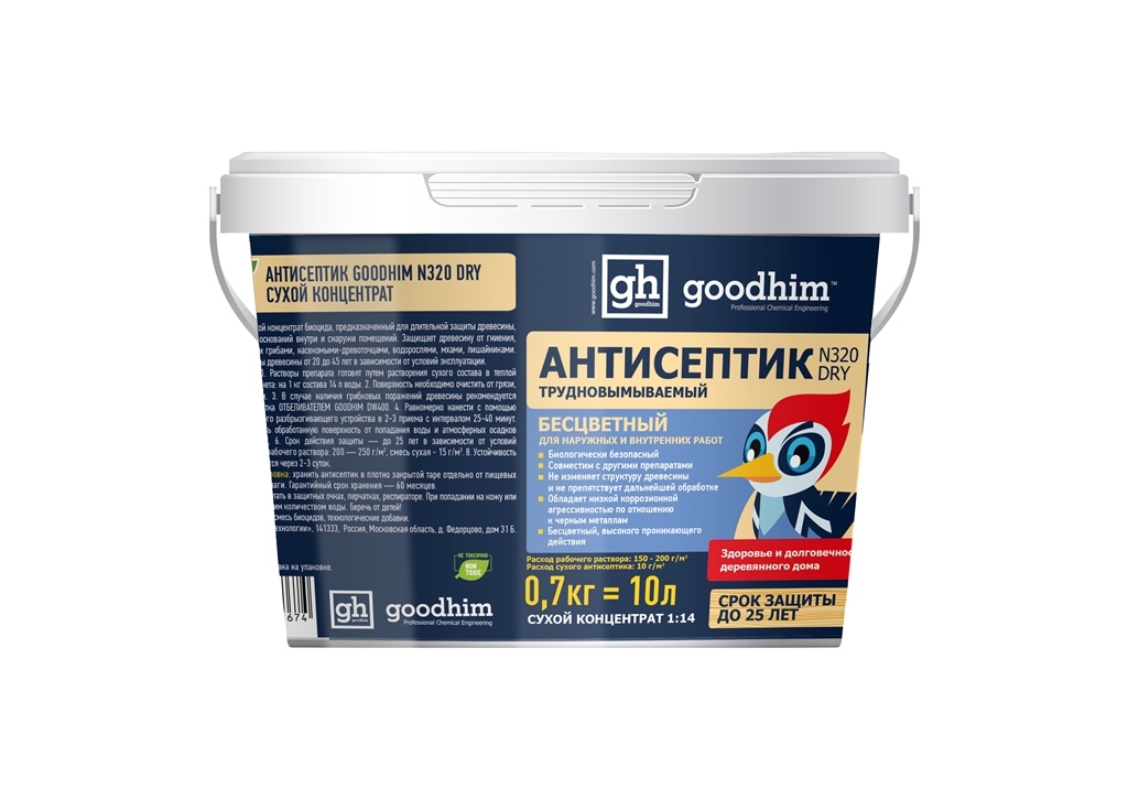 Антисептик сухой концентрат для наружных и внутренних работ (Бесцветный) GOODHIM N320 Dry, 0.7 кг