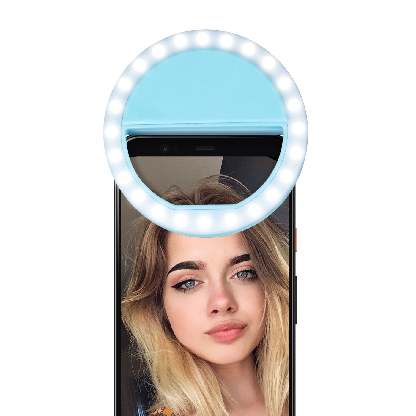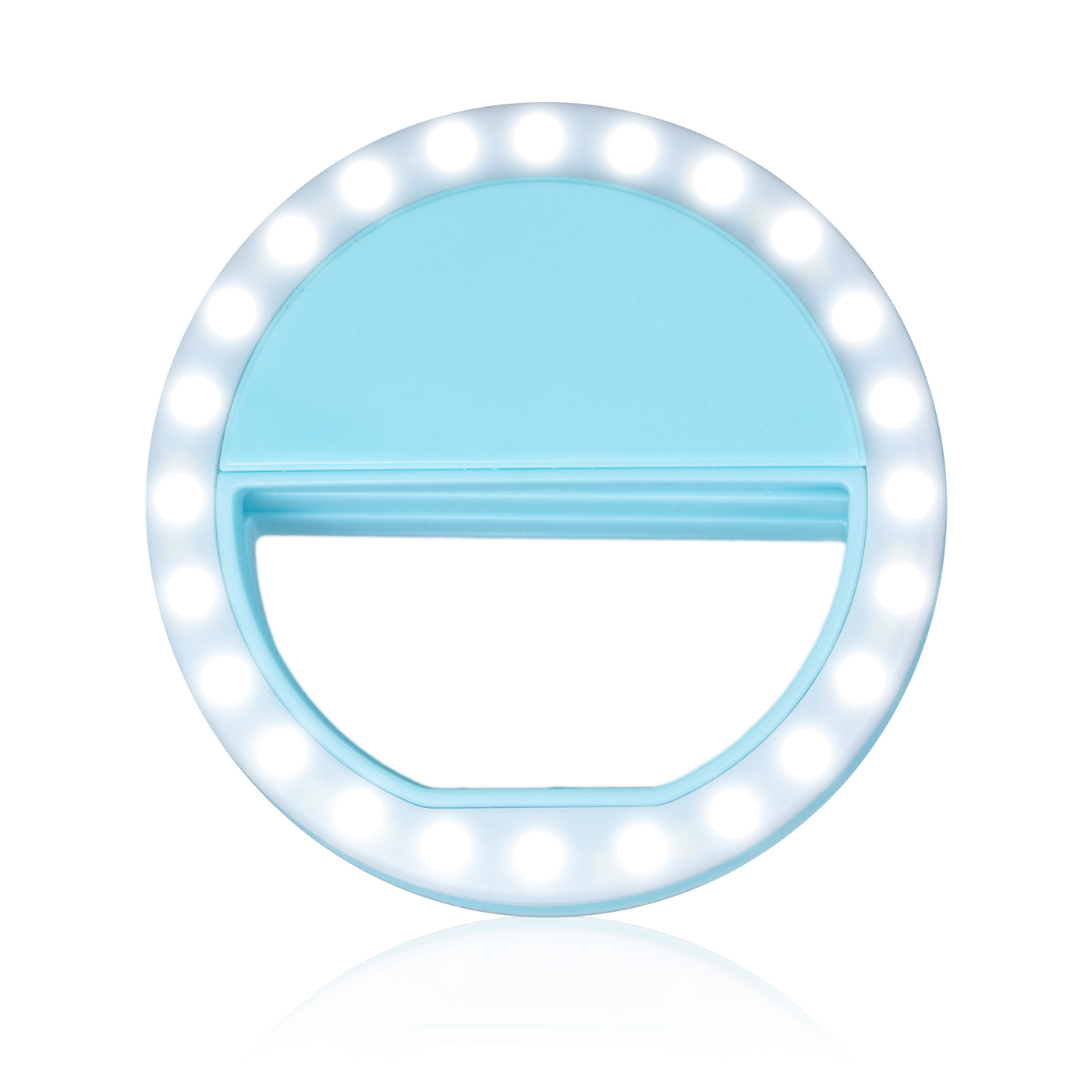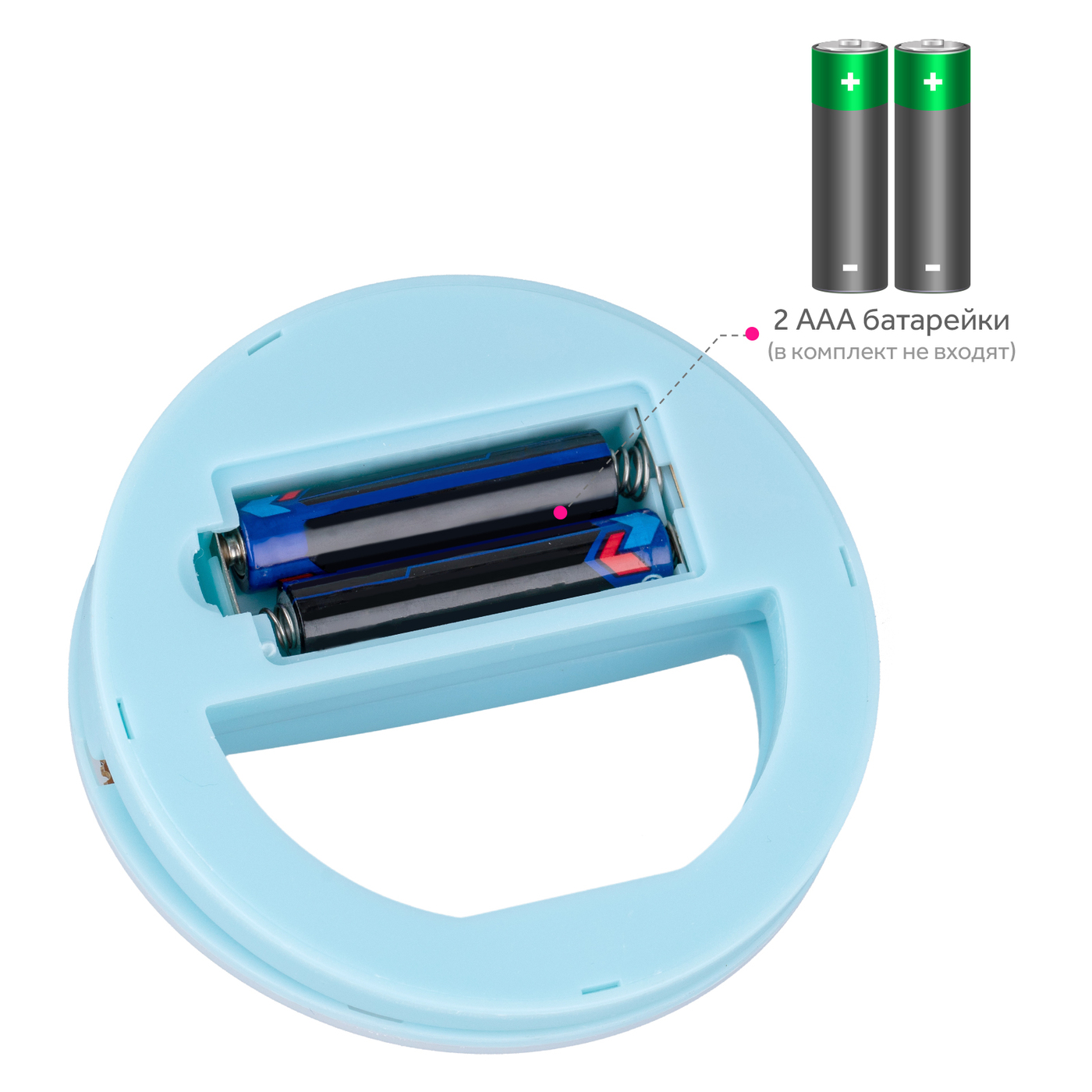 Кольцевая селфи лампа Goodly Selfie Ring, на батарейках, светодиодная для смартфона, планшета, ноутбука, цвет: голубой
