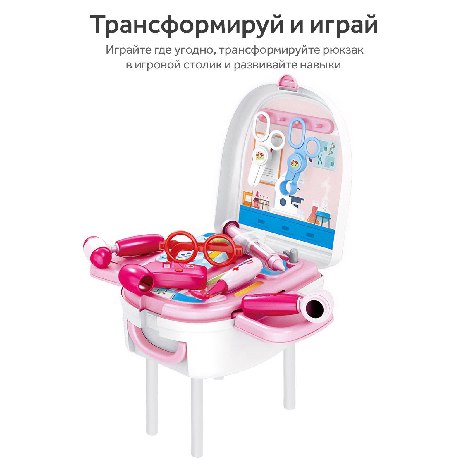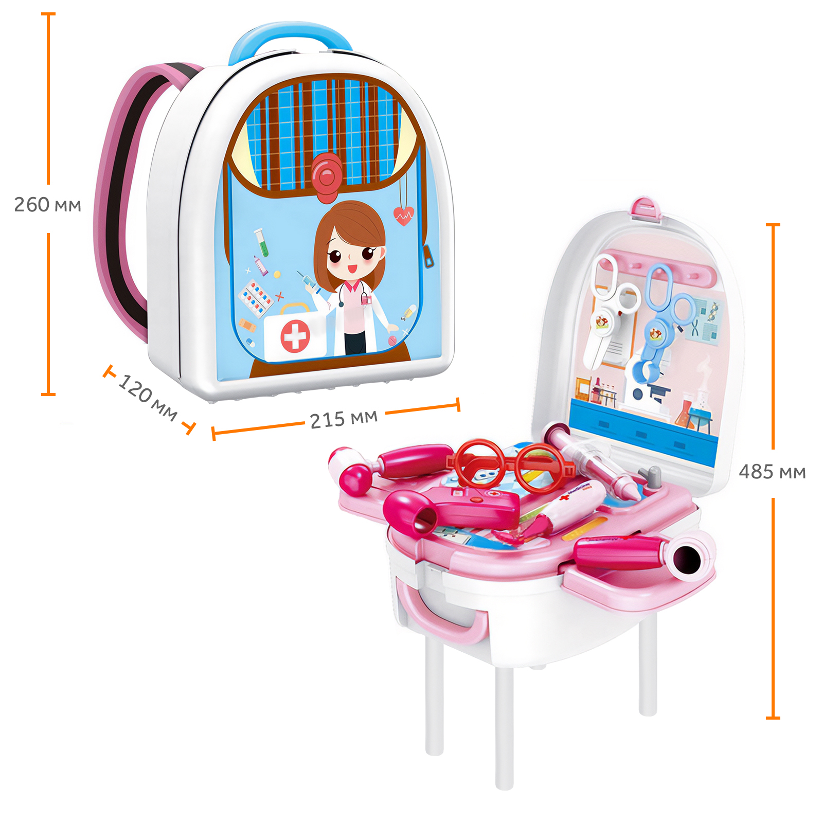 Ранец трансформер Goodly Happy Doctor 2 в 1, рюкзак и игрушечный столик, детский игровой набор "Доктор"
