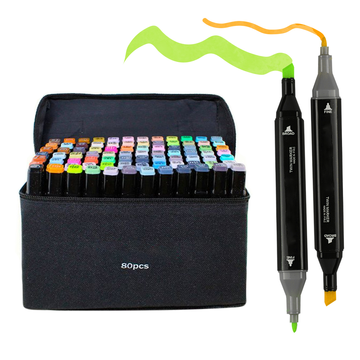 Набор профессиональных маркеров для скетчинга Goodly 80 цветов, двусторонние маркеры в чехле