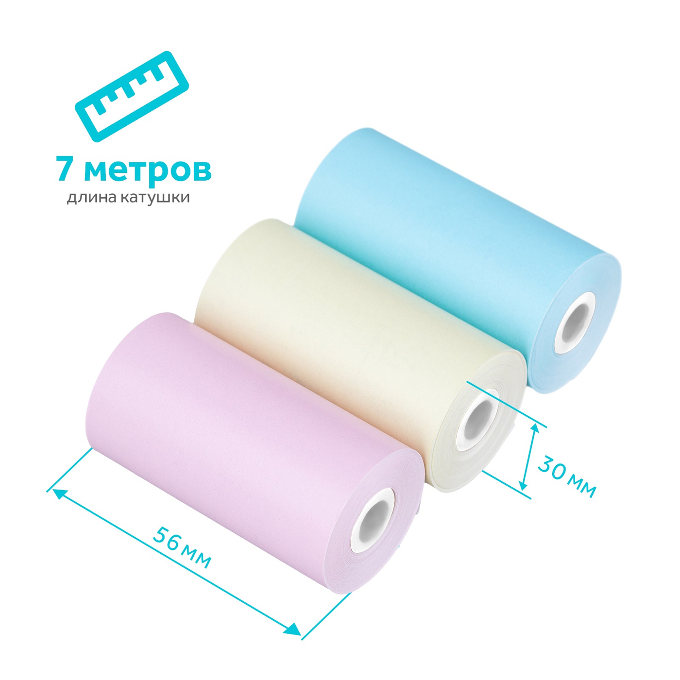 Термобумага Goodly для портативного принтера PeriPage, 3 штуки, желтый, голубой, розовый цвет