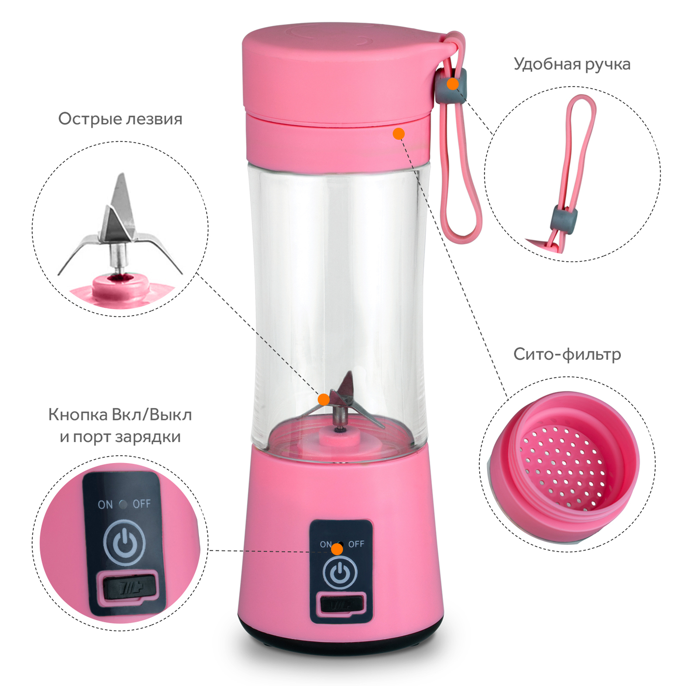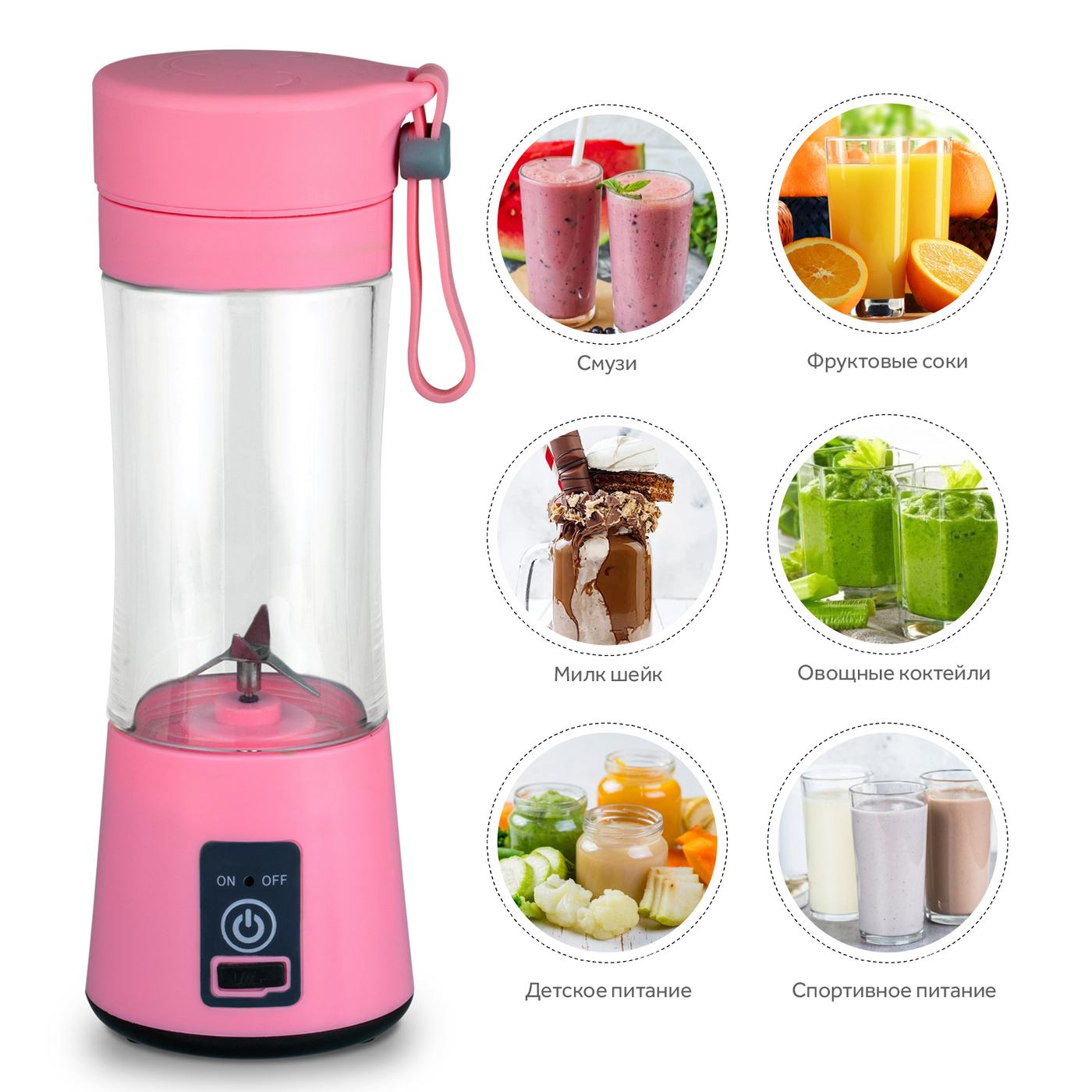 Портативный блендер Goodly Bland для смузи на аккумуляторе, USB, розовый