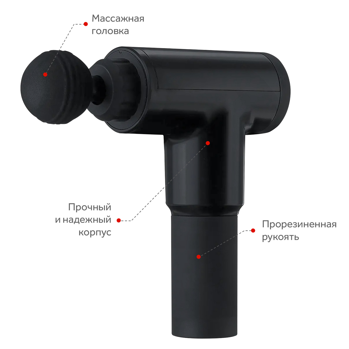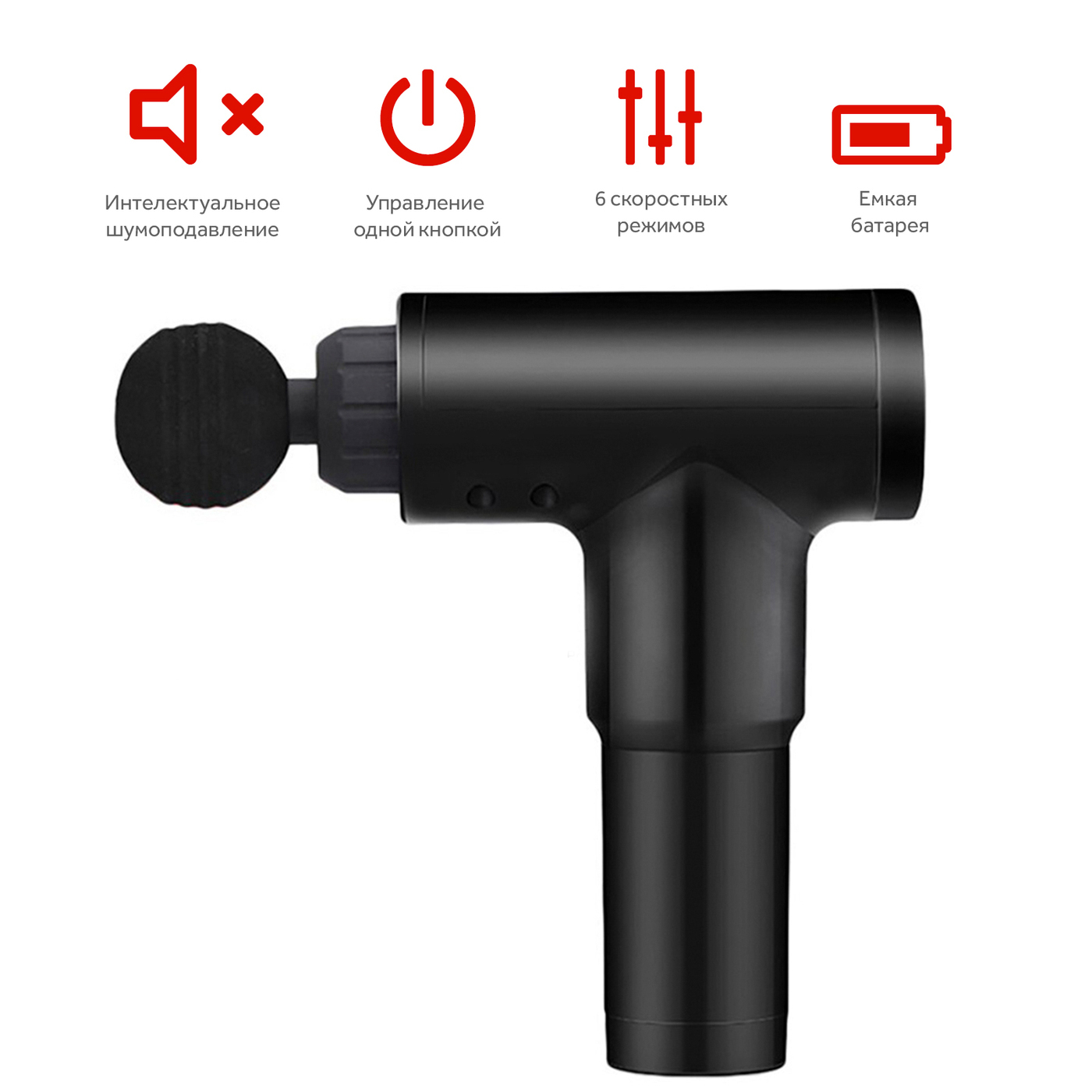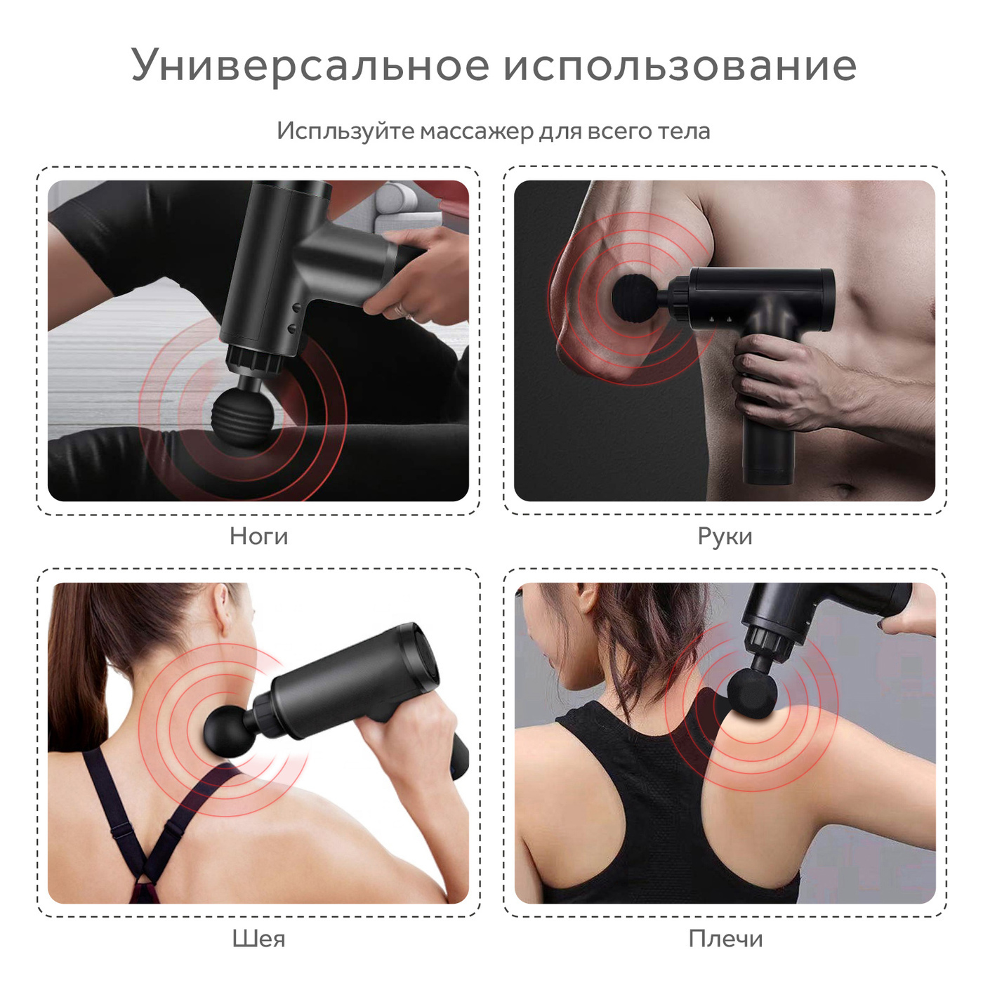 Мышечный массажер Goodly Fascial Gun, ударный пистолет для тела с набором насадок, черный
