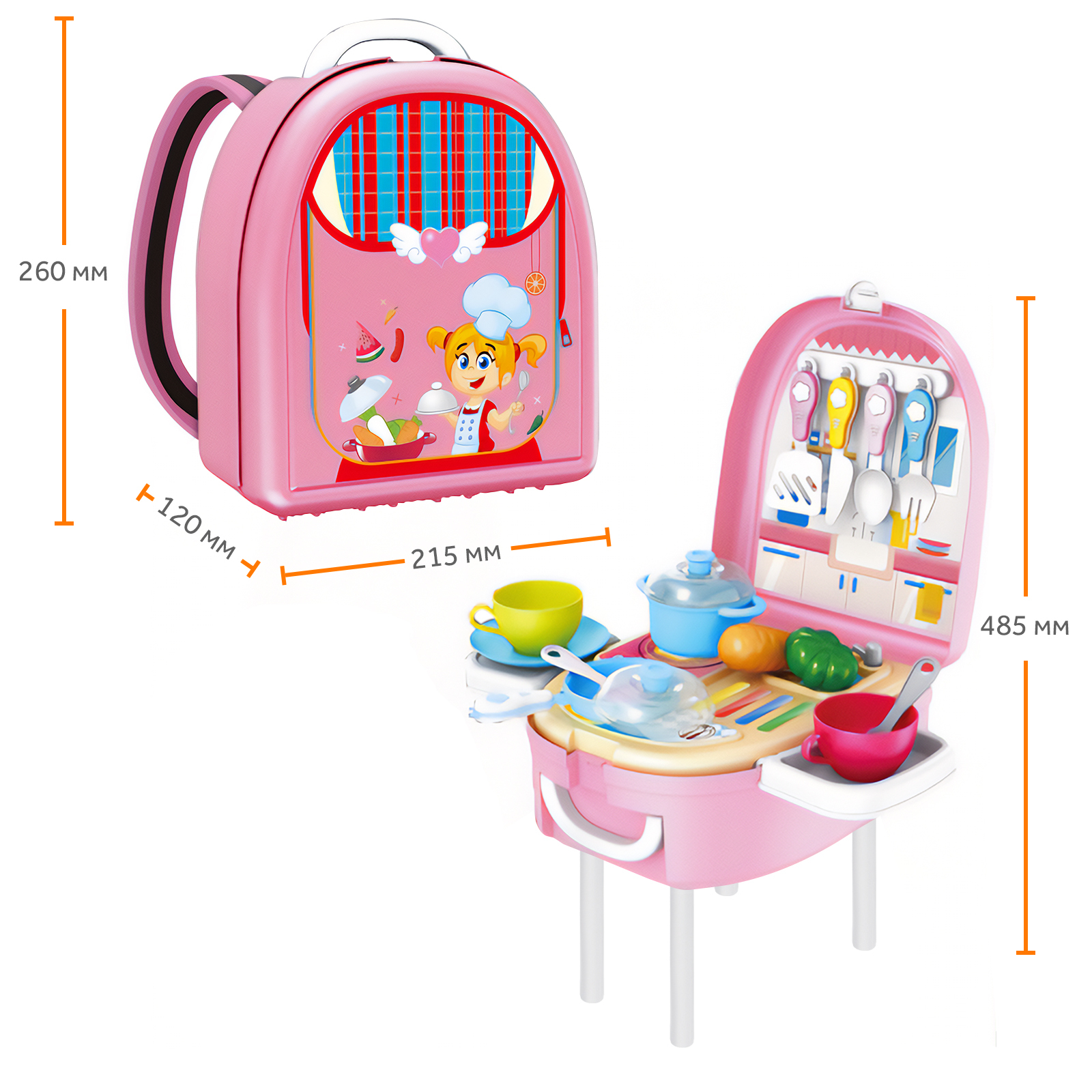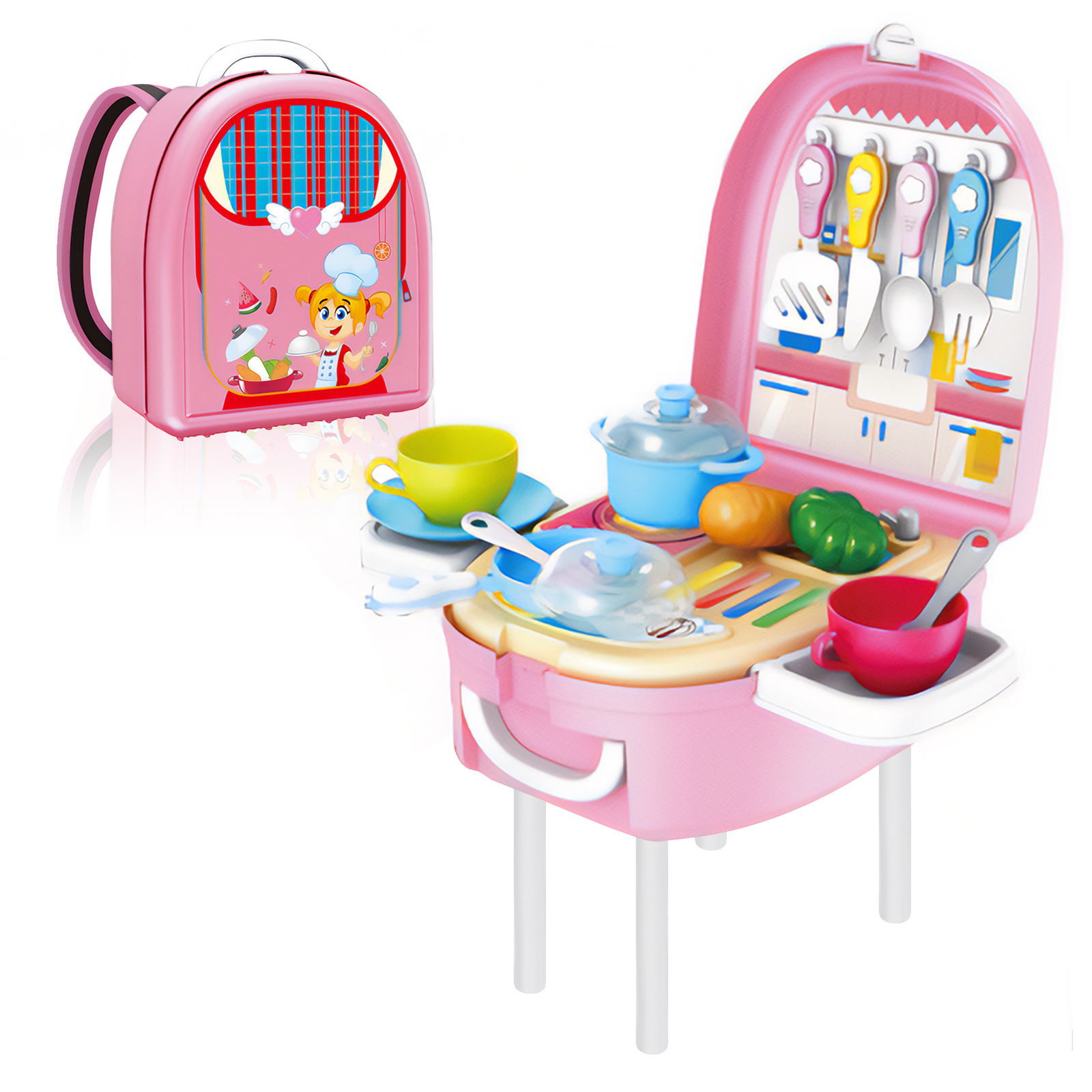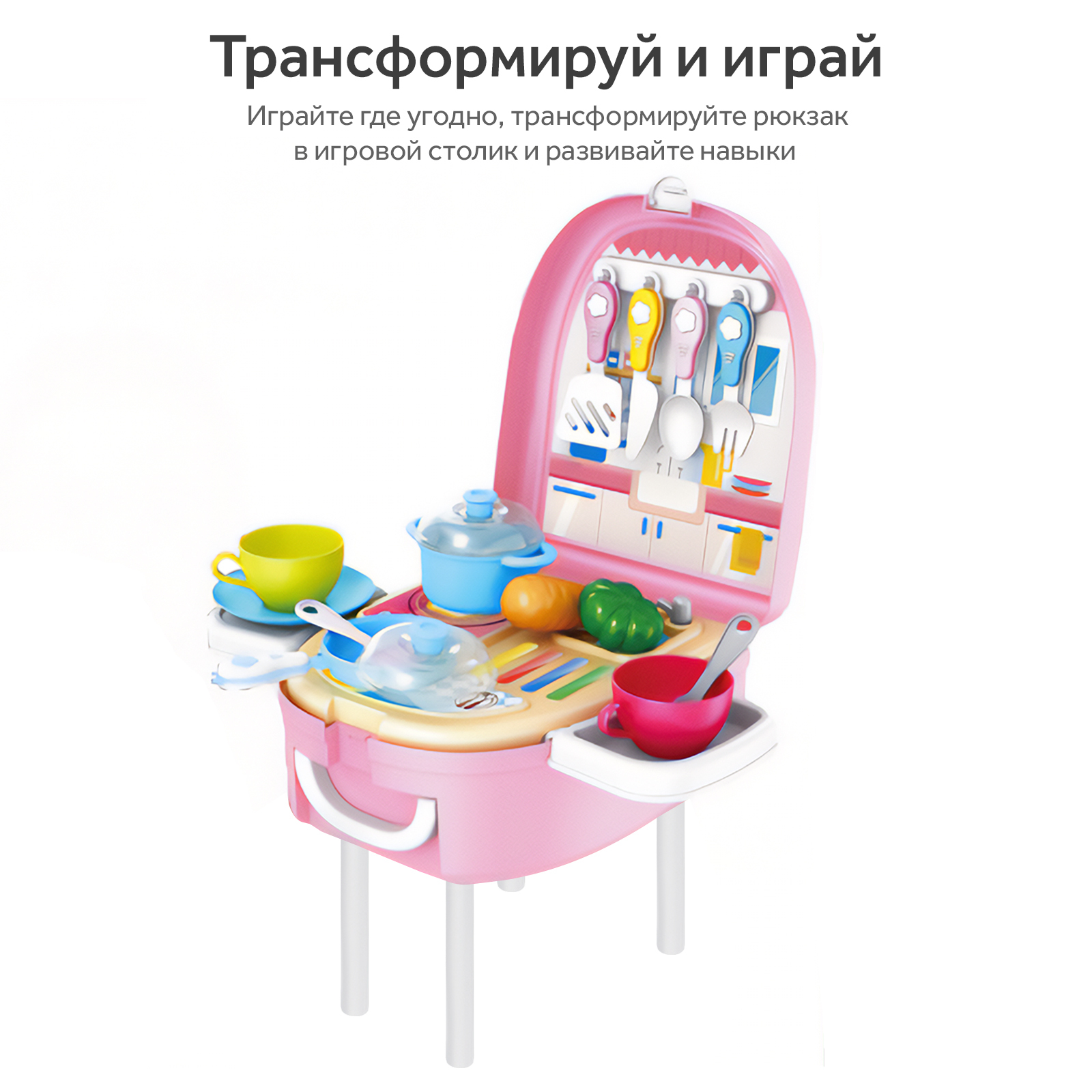 Ранец трансформер Goodly Happy Chef 2 в 1, рюкзак и игрушечный столик, детский игровой набор "Кухня"
