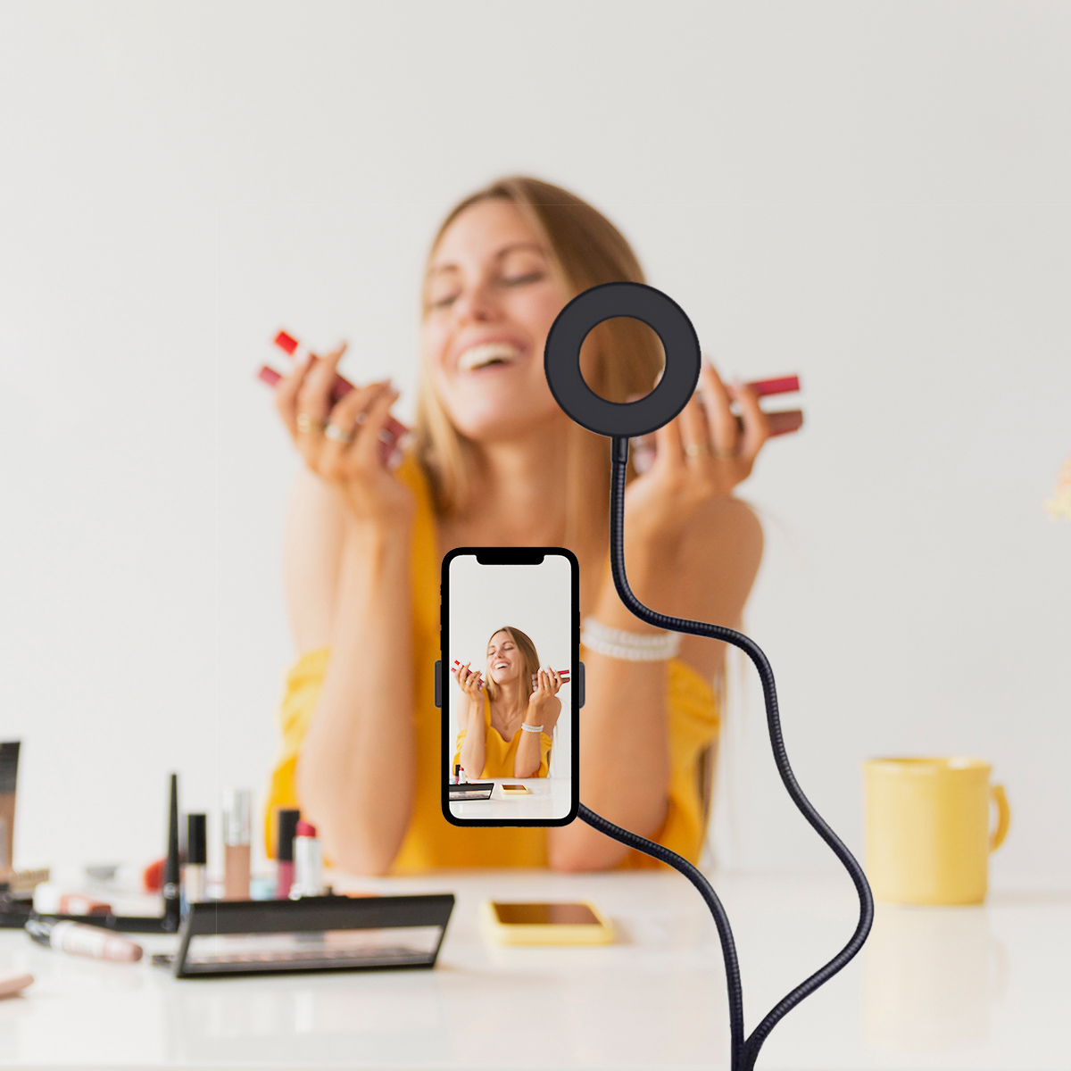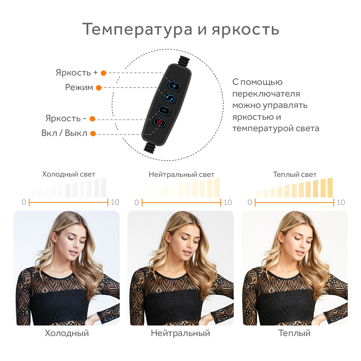 Кольцевая светодиодная лампа Goodly LED RING 26 см RGB, с цветными режимами, Bluetooth пультом