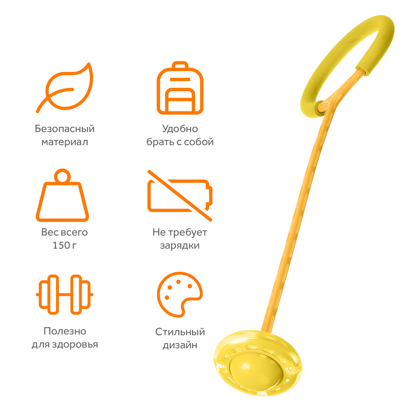 Нейроскакалка Goodly Jump Rope, светящаяся скакалка на ногу с LED роликом, желтый