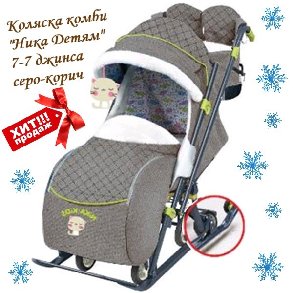 Санки коляска "Ника Детям" 7-7 джинса серо-корич